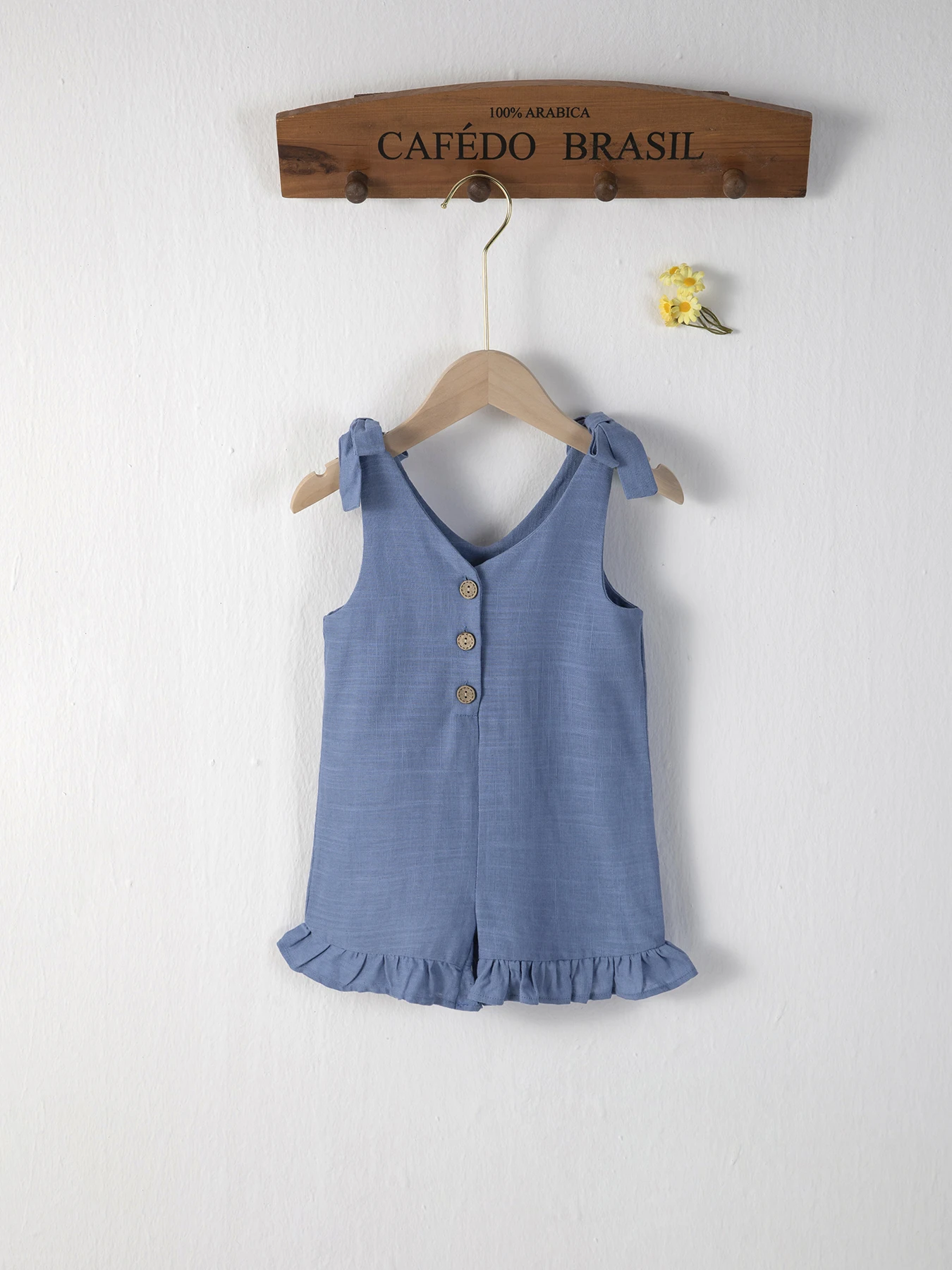 Home Uncategorized Sleeveless cotton and linen jumpsuit for baby solid color ruffled casual home new summer 2023