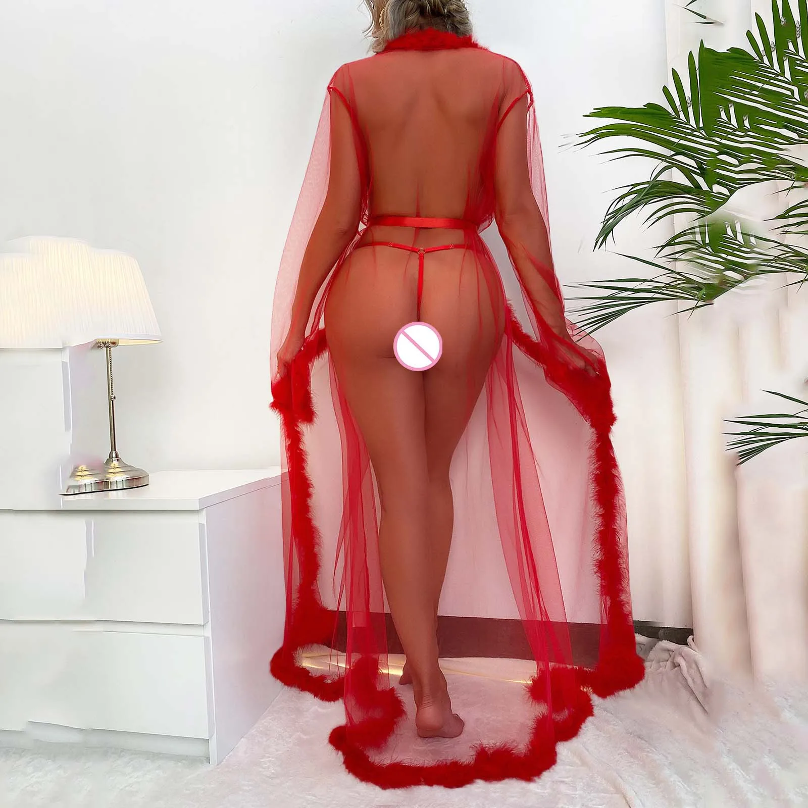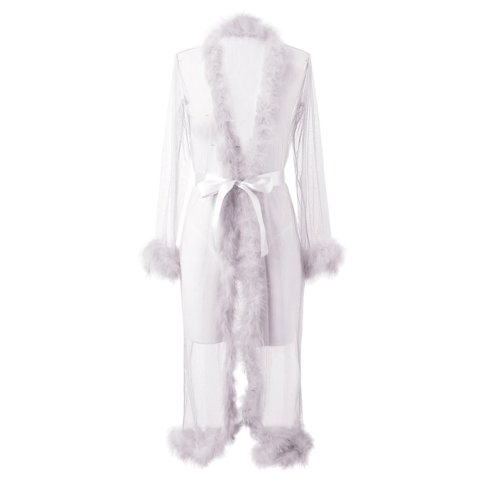 Women Fashion Sexy Tulle Robe Long Lingerie Nightgown Bathrobe Sleepwear Bridal Robe Lace Lingerie