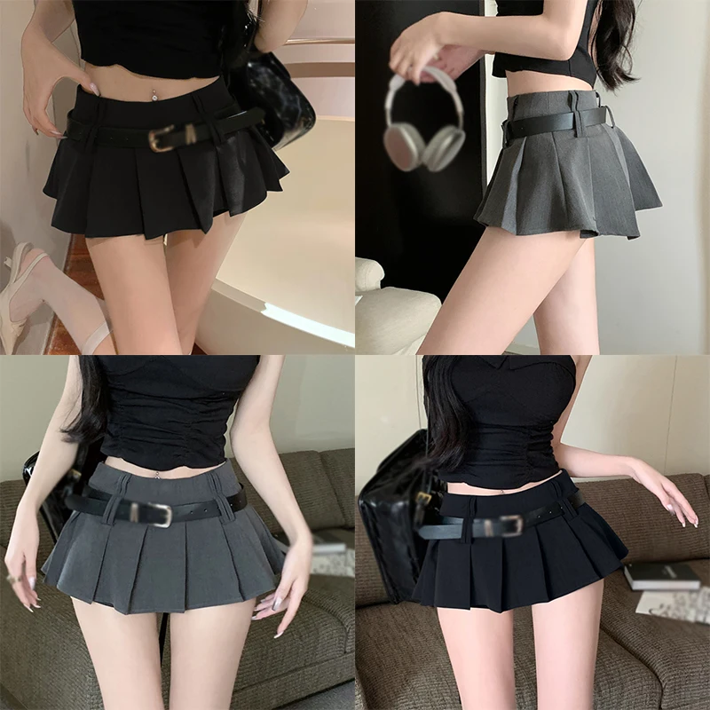 Home Uncategorized Women’s High Waist Short Skirt Sexy and Fashionable Spicy Girl A-line Pleated Skirt with Belt Half length Skirt