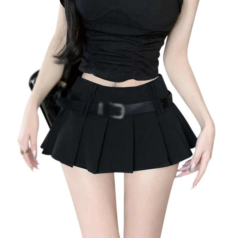 Women’s High Waist Short Skirt Sexy and Fashionable Spicy Girl A-line Pleated Skirt with Belt Half length Skirt