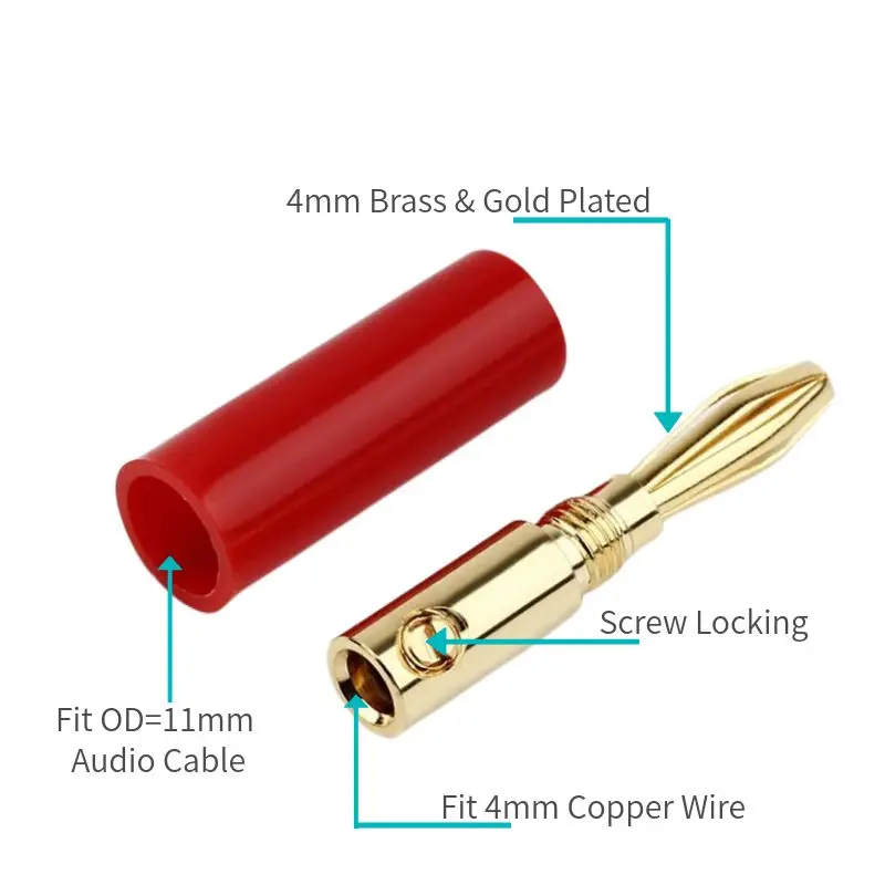 –2/8/20 pcs x Banana Plug (Half Red and Black)