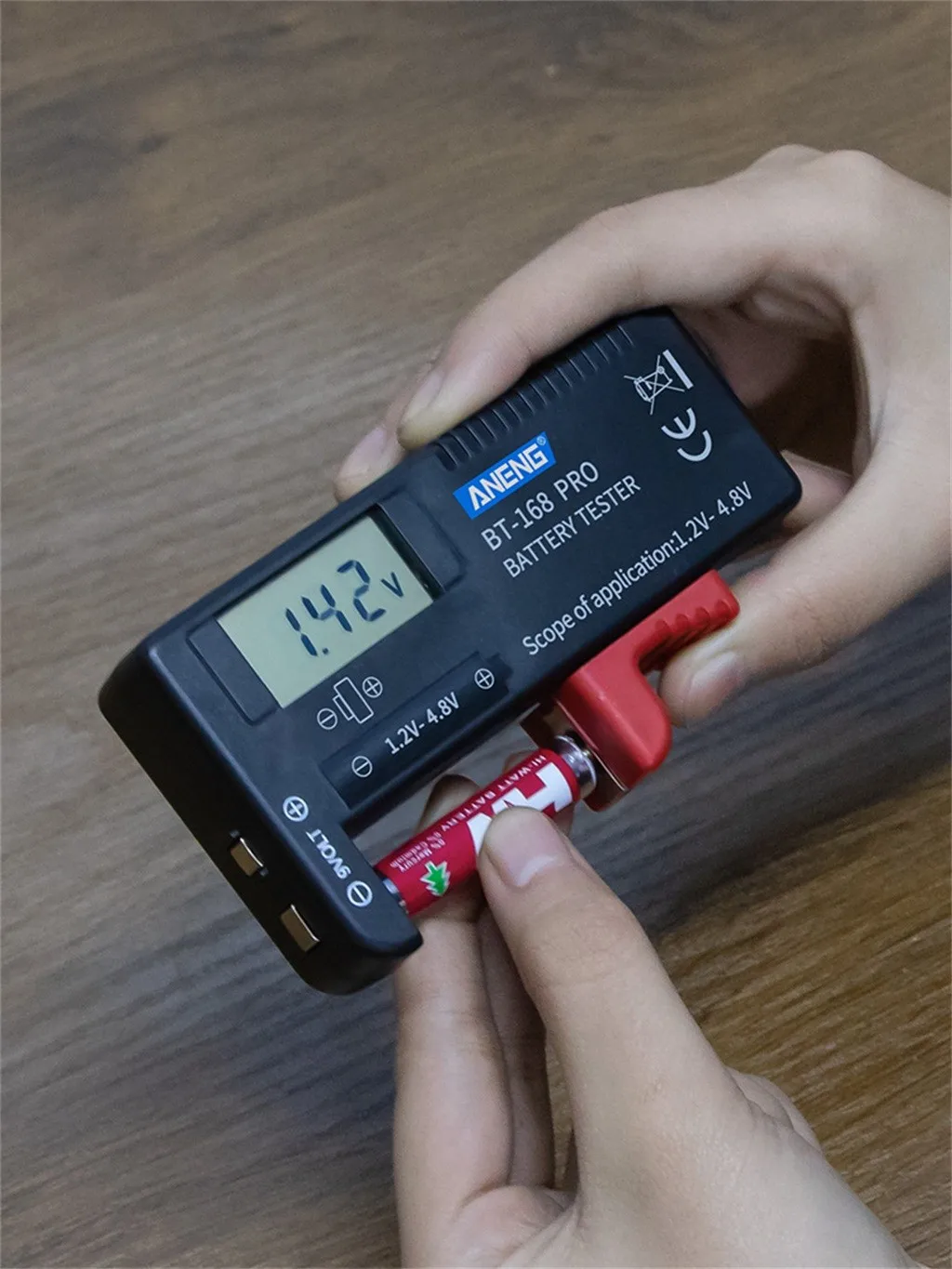 1.9V battery check: put battery into the 2 check holes on the