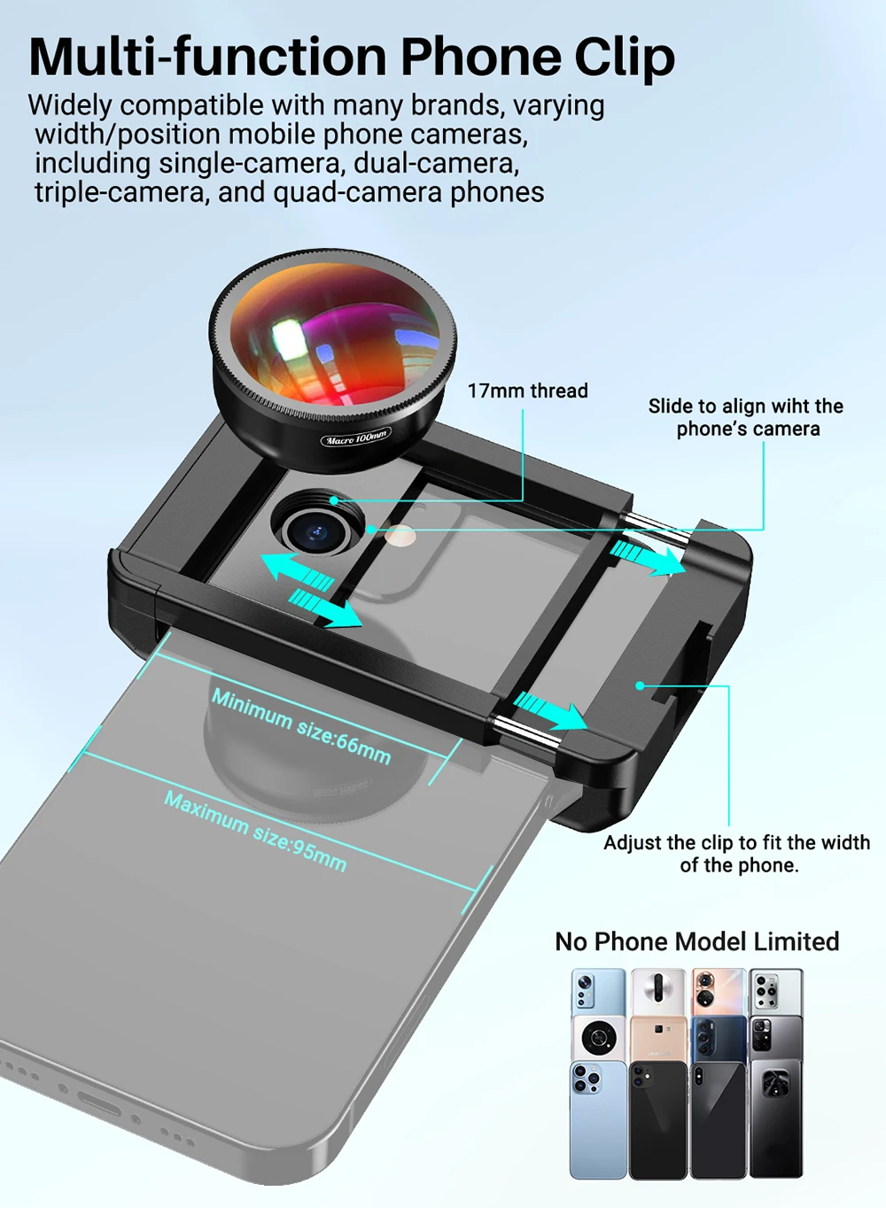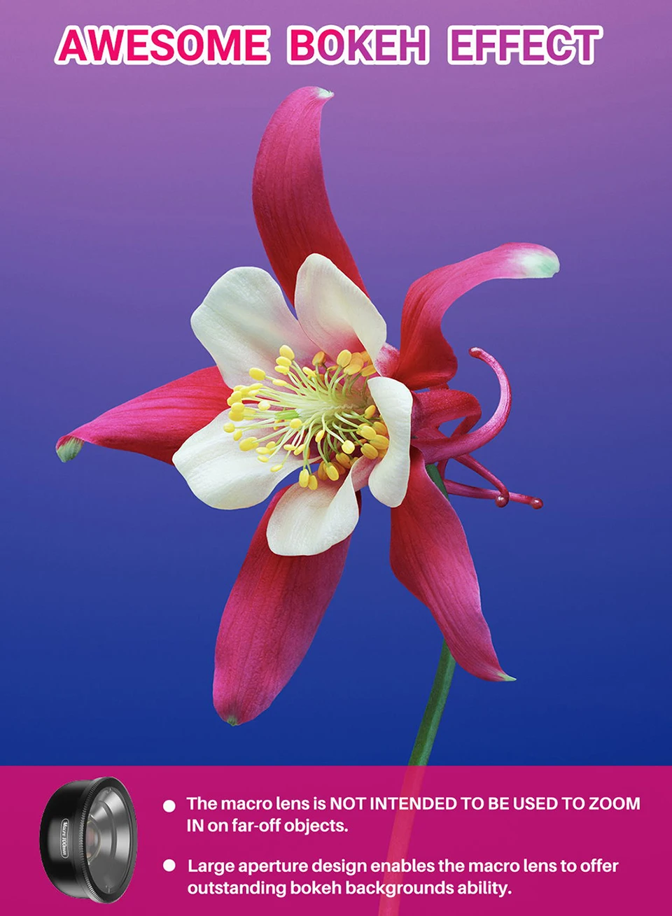 APEXEL newly upgrated 100mm macro lens with CPL filter and common clip, it permits your telephone to get good picture as a SLR