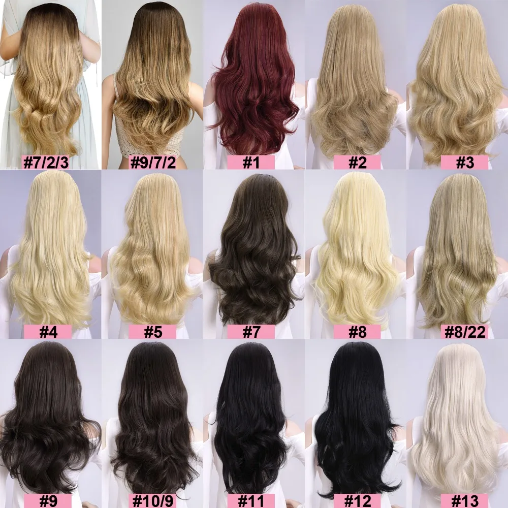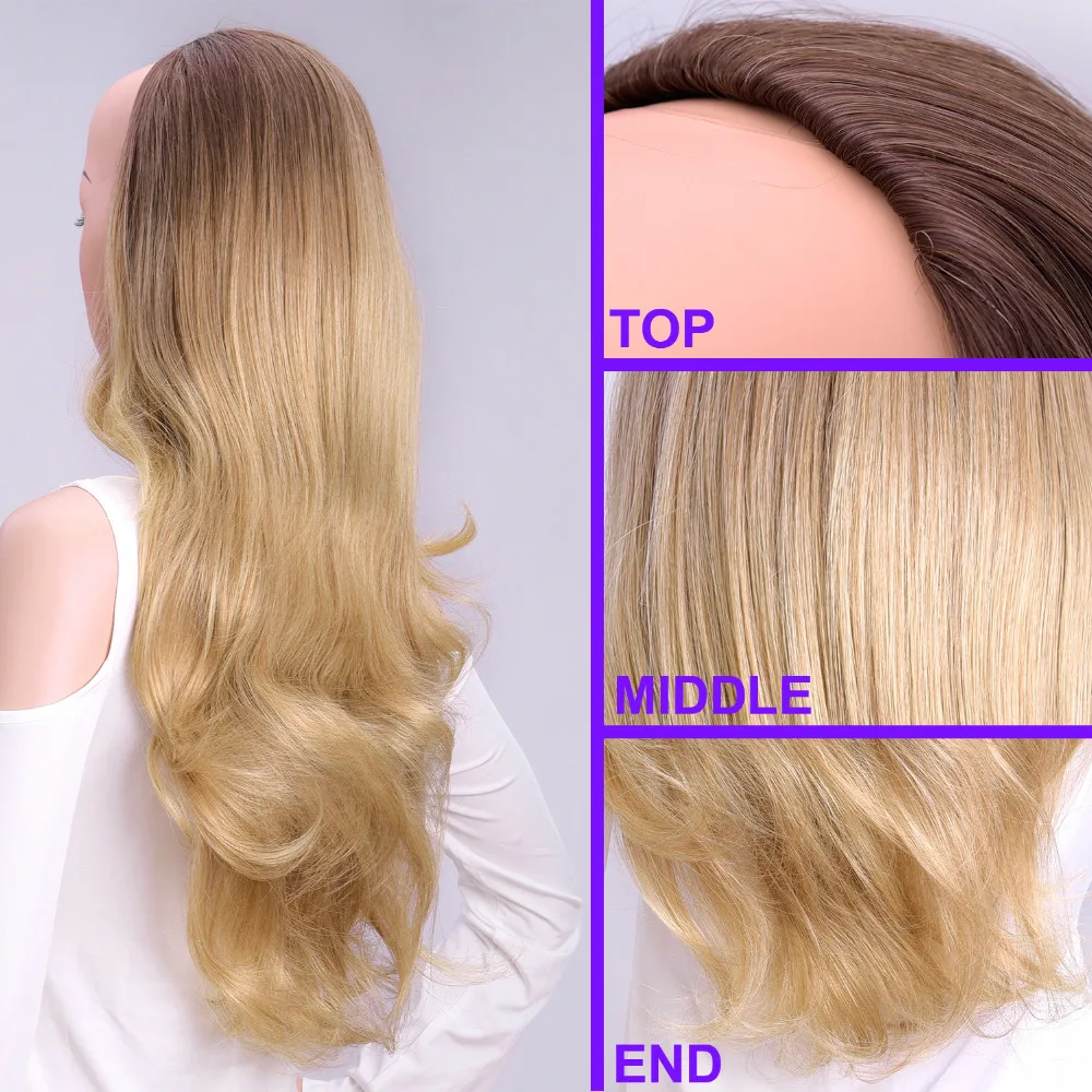 DinDong Clip in Hair Extensions Synthetic Wavy 3/4 Half Wig For Women 24 inch 210G Premium Heat Resistant Hair 613# Blonde Brown