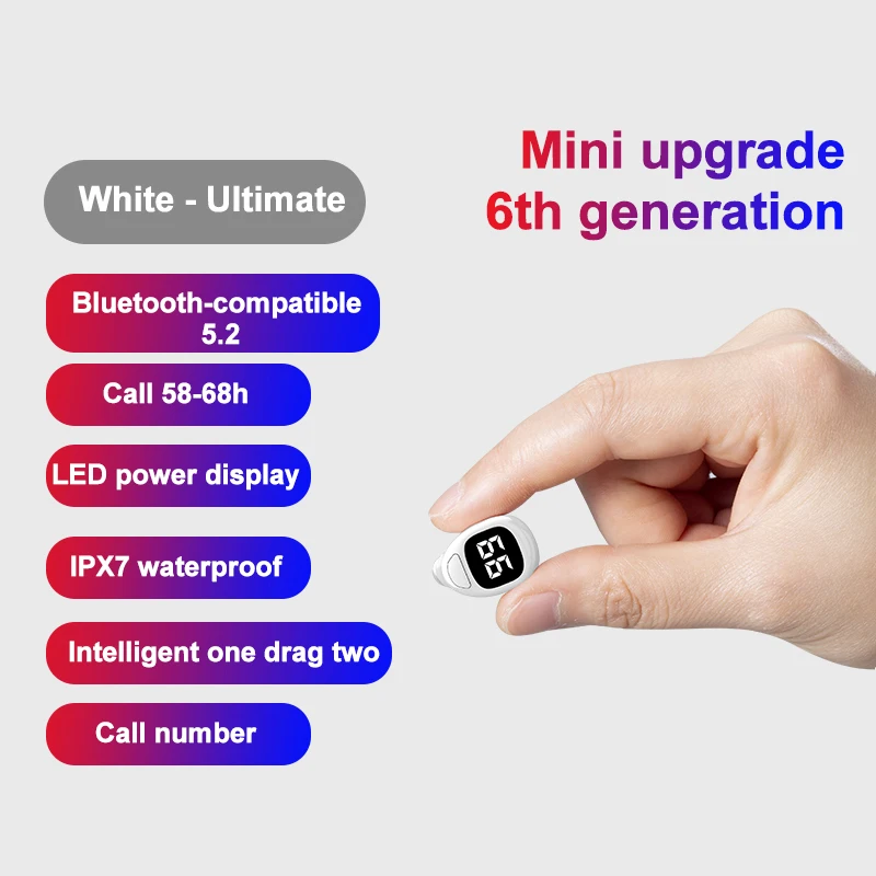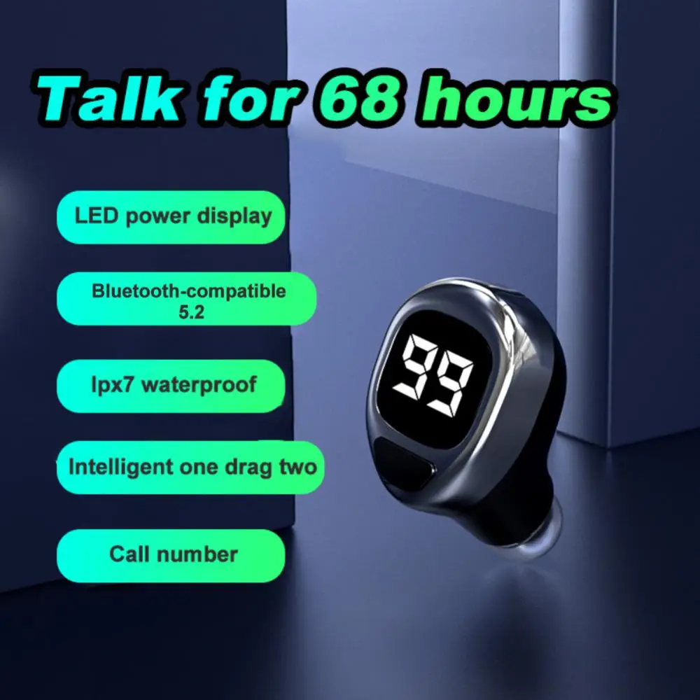Hifi Sound Earphone 120mah Lightweight Led Power Display Noise-cancellation Waterproof Consumer Electronics Mini Headset Single