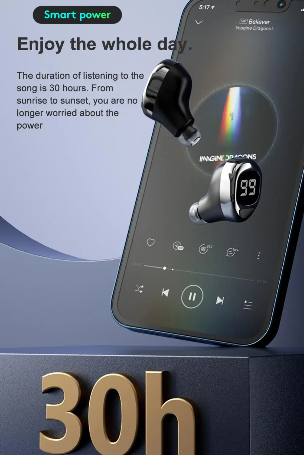 【Low energy consumption is the core expertise of earphones】Adopt beautiful energy-gathering cabin design, built-in large-capacity lithium battery, escort your earphones