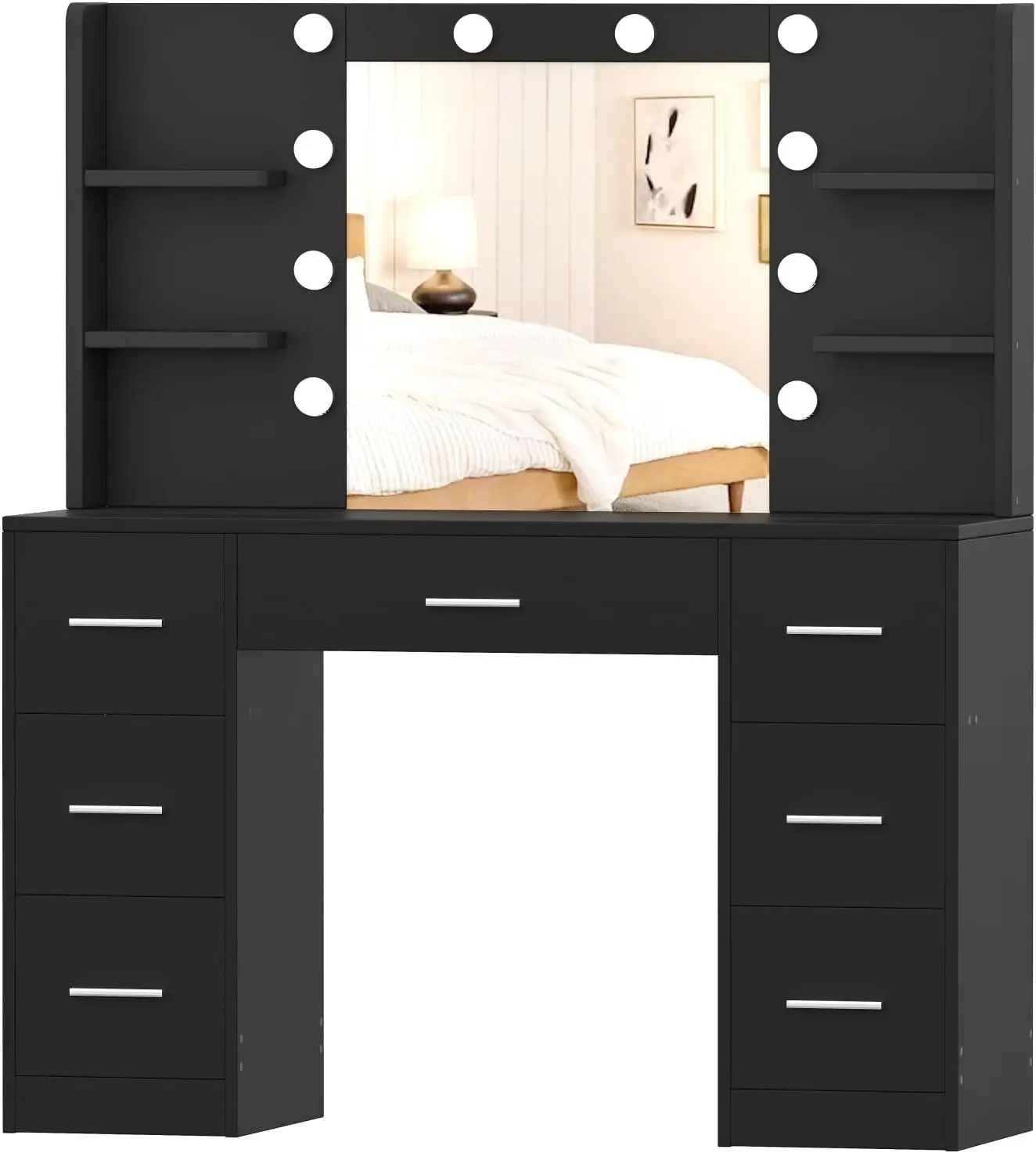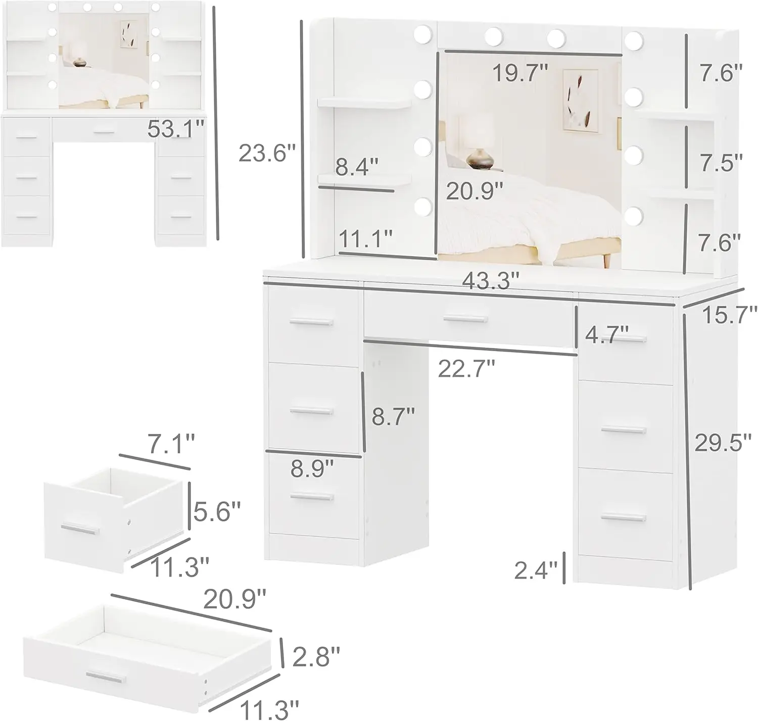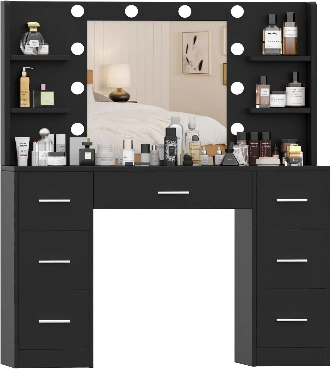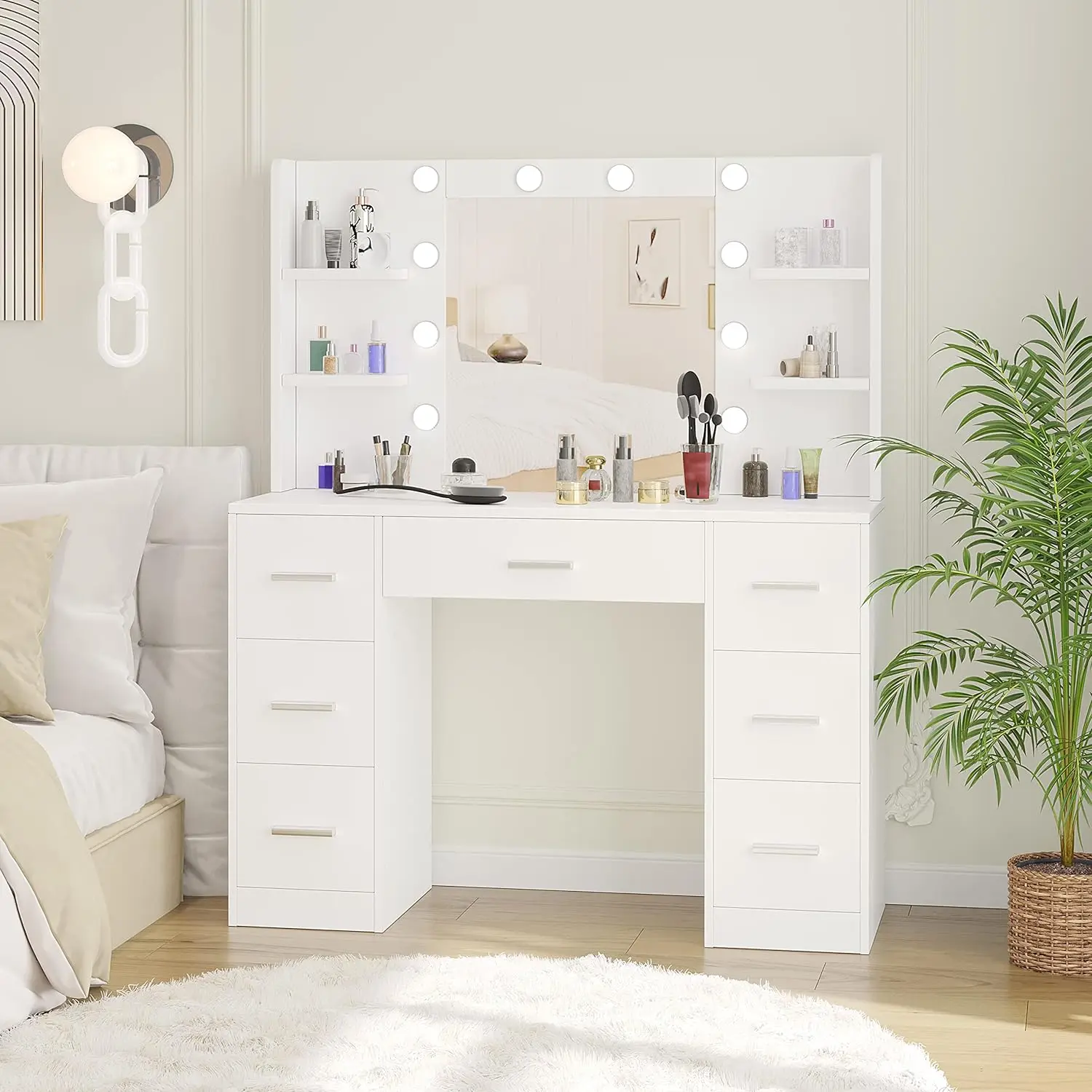 - Large Storage Space: Are you continue to frightened about with your messy vainness? Irontar vainness desk does all of it! This make-up vainness with 7-large-drawer and 6 open cabinets may give you a decision. The make-up desk will preserve your dressing and grooming setting well-organized and meet your day by day make-up foundation.