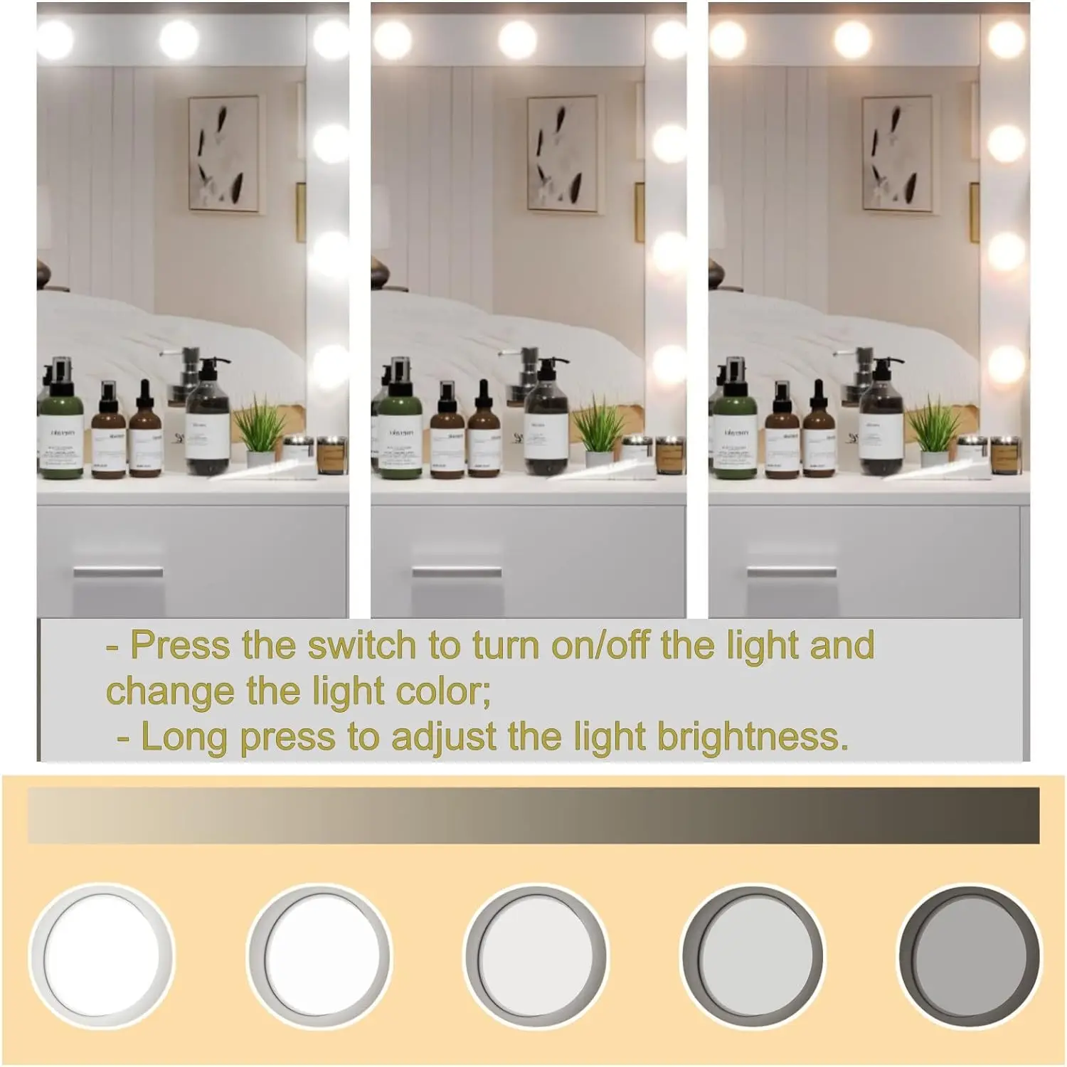 - 3-Color Lighting Modes Brightness Adjustable: The make-up vainness has 10 LED lights, the sunshine supply can alter into 3 colours(cool white, heat white or heat yellow) and lightweight brightness is adjustable, so simply contact the swap to get the impact you want!