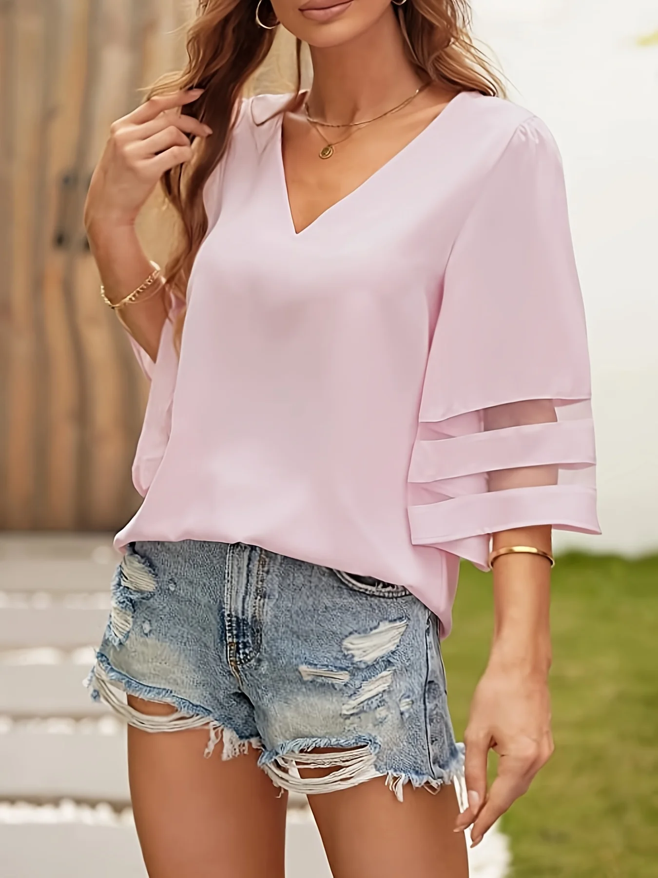 Uncategorized Plus Size New Women Summer Loose V Neck Tops Ladies Mesh Stitching 3/4 Sleeve Casual Holiday Blouse Shirt Female Blusas affiliatedstore - March 29, 2024 0 Price: [price_with_discount]