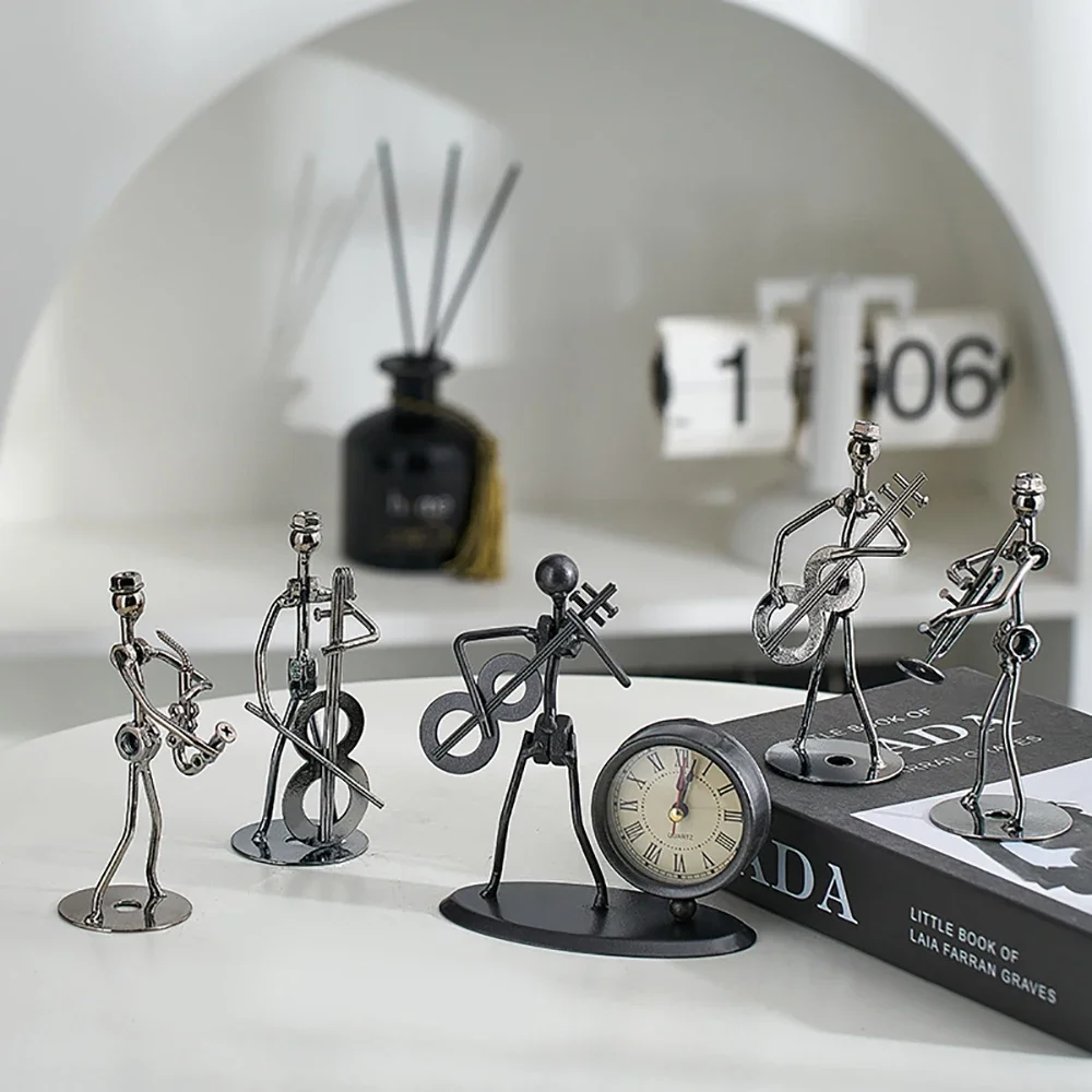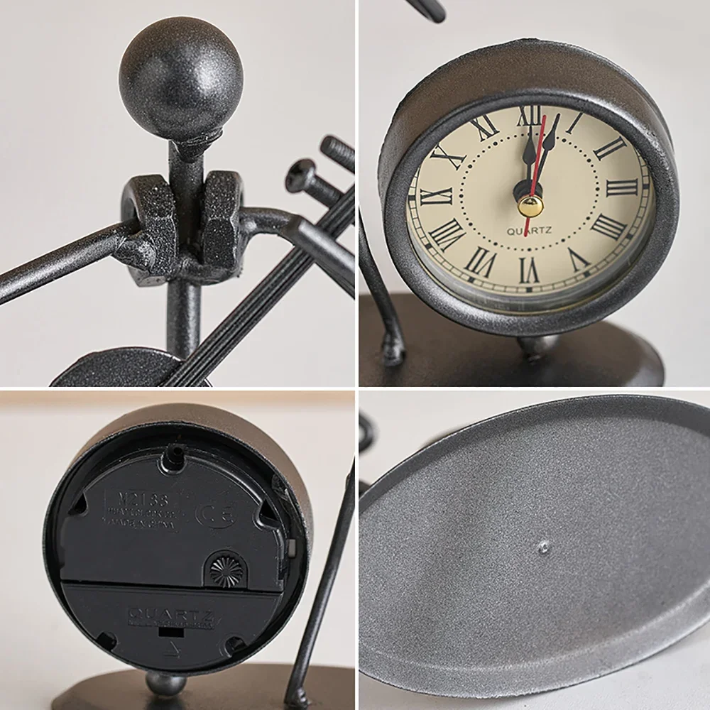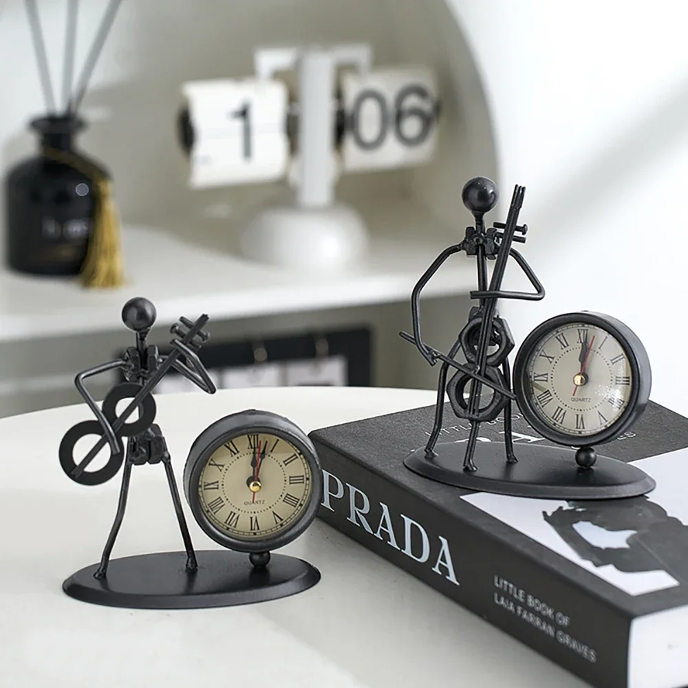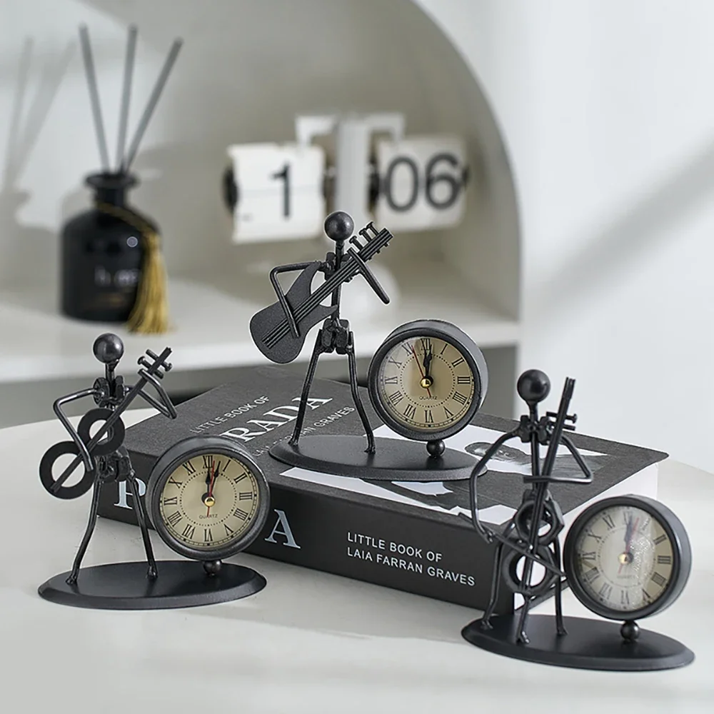Home Uncategorized Retro Metal Musical Clock Modern Home Decor Creative Iron People Model Desk & Table Clock Simple Time Recording Accessories Gift