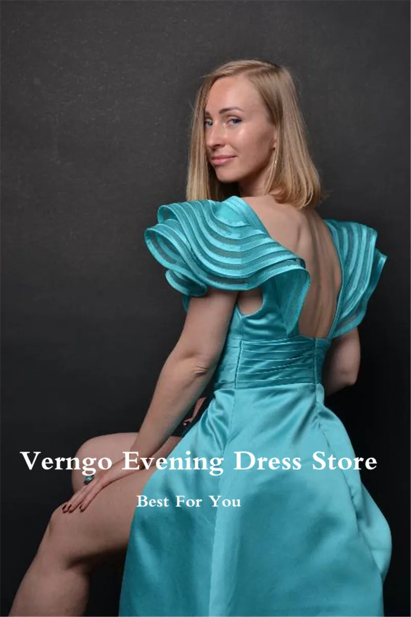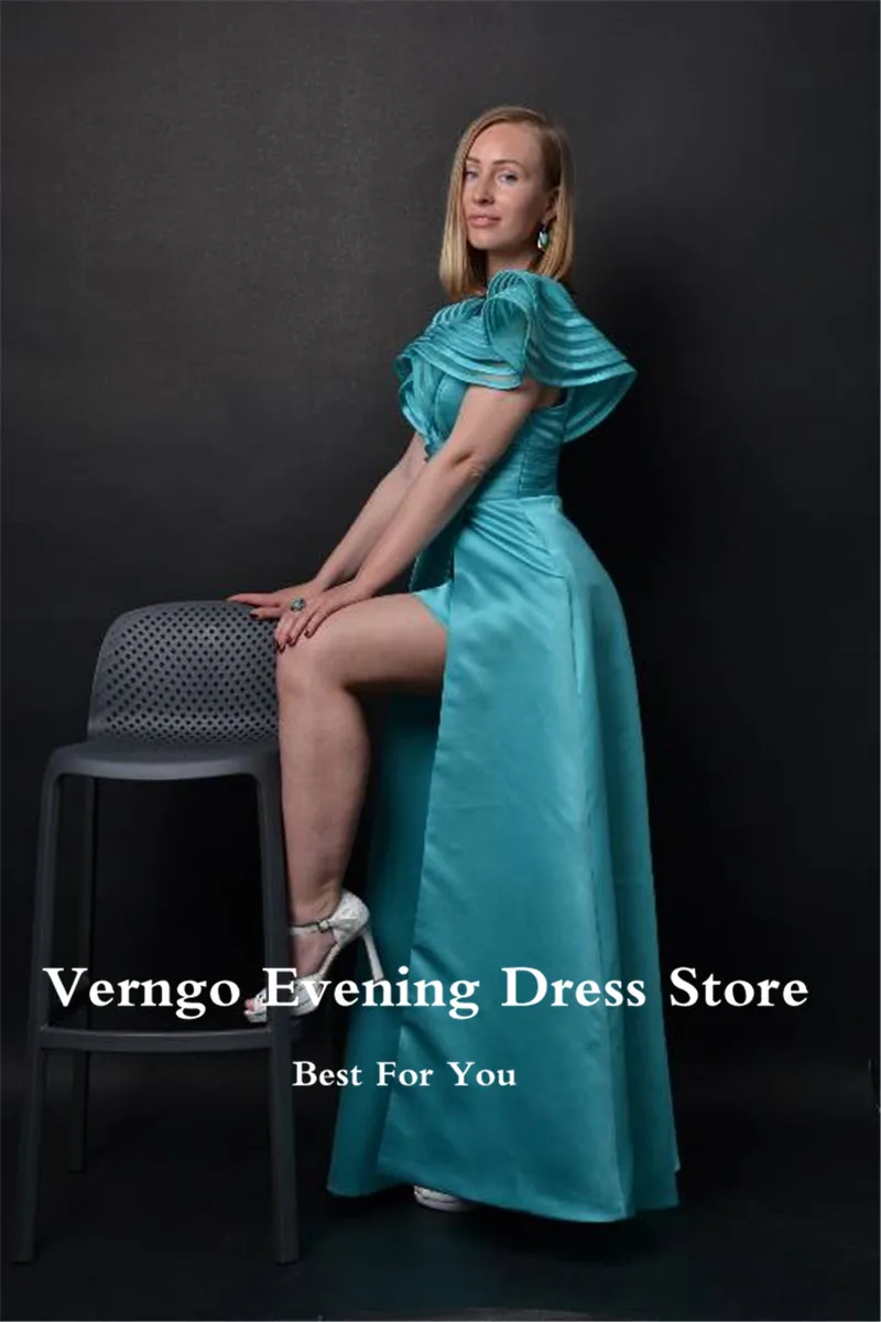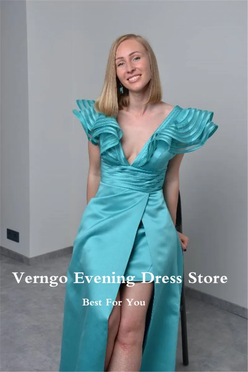Home Uncategorized Verngo Modern Green A Line Satin Evening Dresses Cap Sleeves V Neck Side Slit Long Prom Gowns Women 2023 Special Occasion Dress