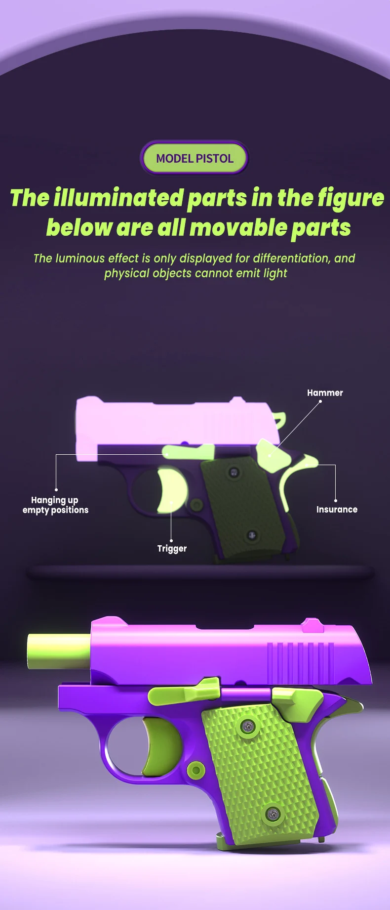 3D Gravity Knife Model Gun Mini 1911 Toy Gun Non-Firing Bullets Toy Gun Stress Relief Toy Christmas Gift Birthday Gift