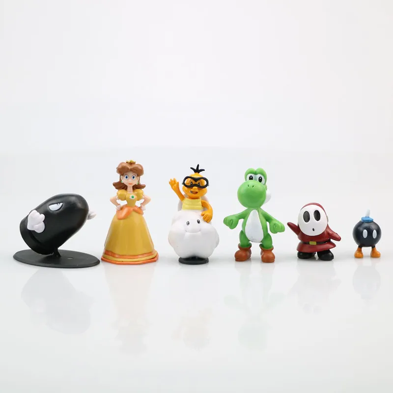 Uncategorized 6pcs/set Super Mario Bros PVC Action Figure Toys Dolls Model Set Luigi Yoshi Donkey Kong Mushroom for kids birthday gifts AAA affiliatedstore - March 30, 2024 0 Price: [price_with_discount] Welcome to our retailer Size: 4-7cm Material: PVC Packaging: OPP Bag(No Box)