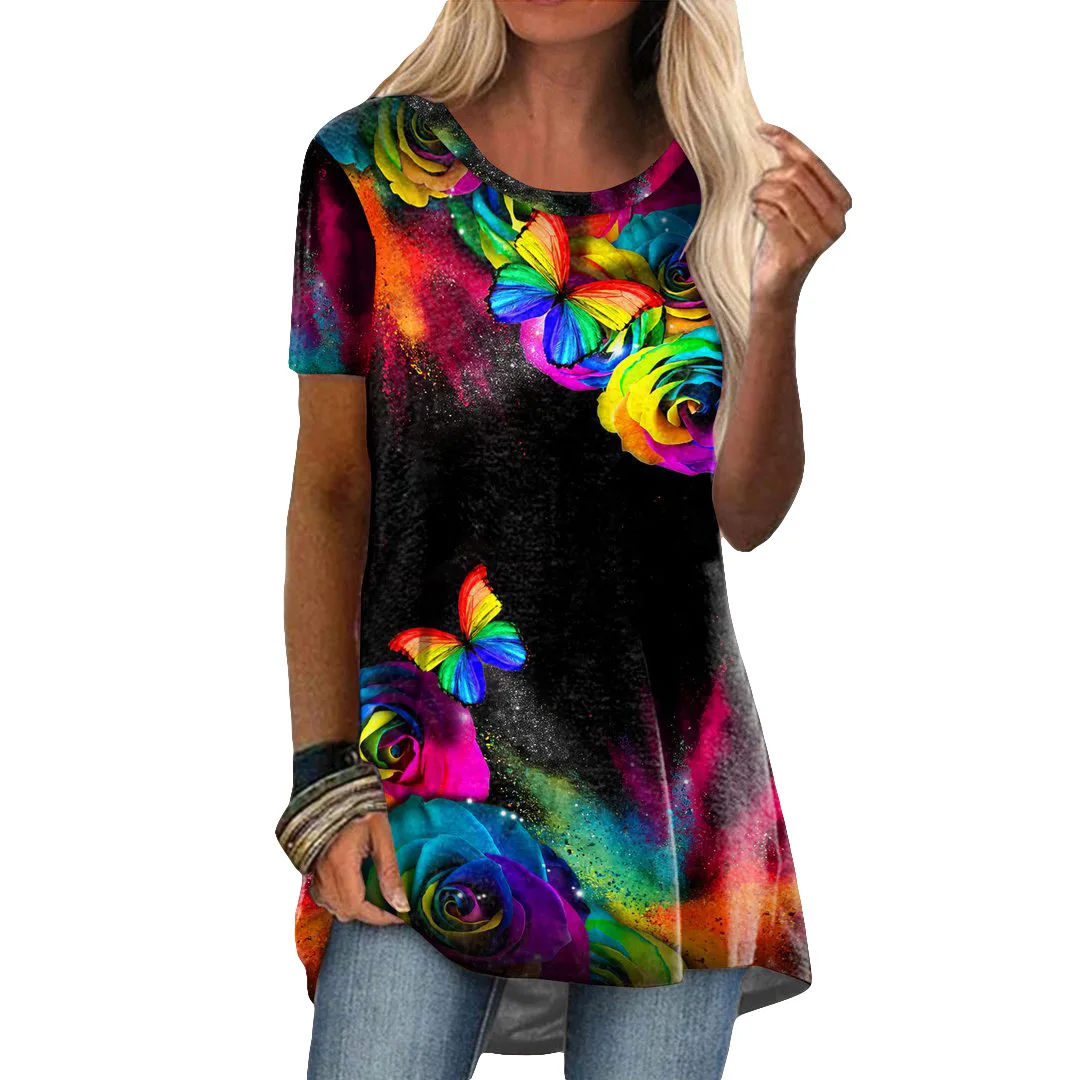 Butterfly 3d Print T-shirt Women Fashion T-shirts Ladies Tops Tees Casual Loose Long Tshirt Women’s Clothing Y2k Clothes Girl