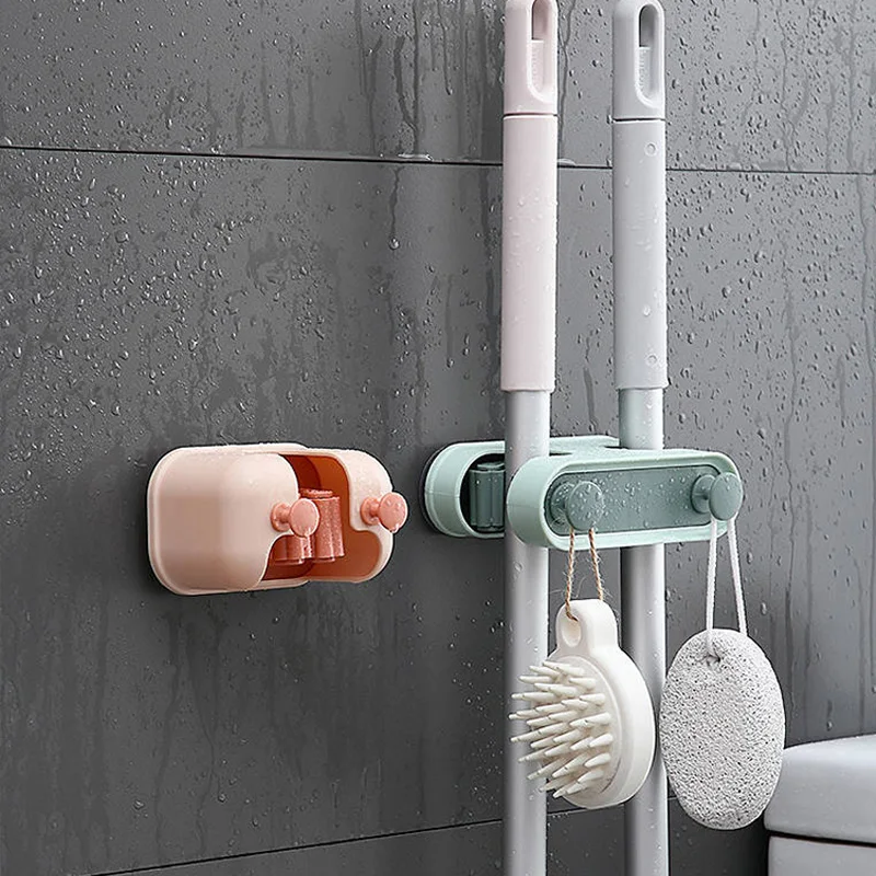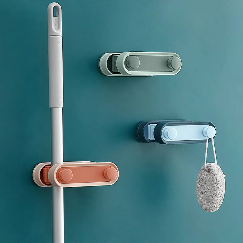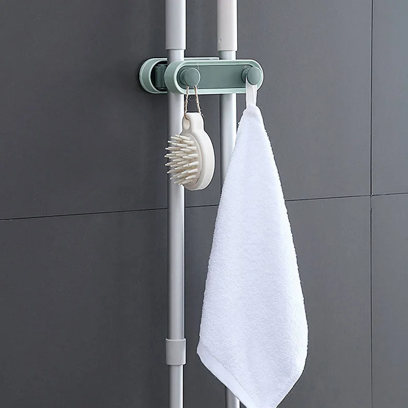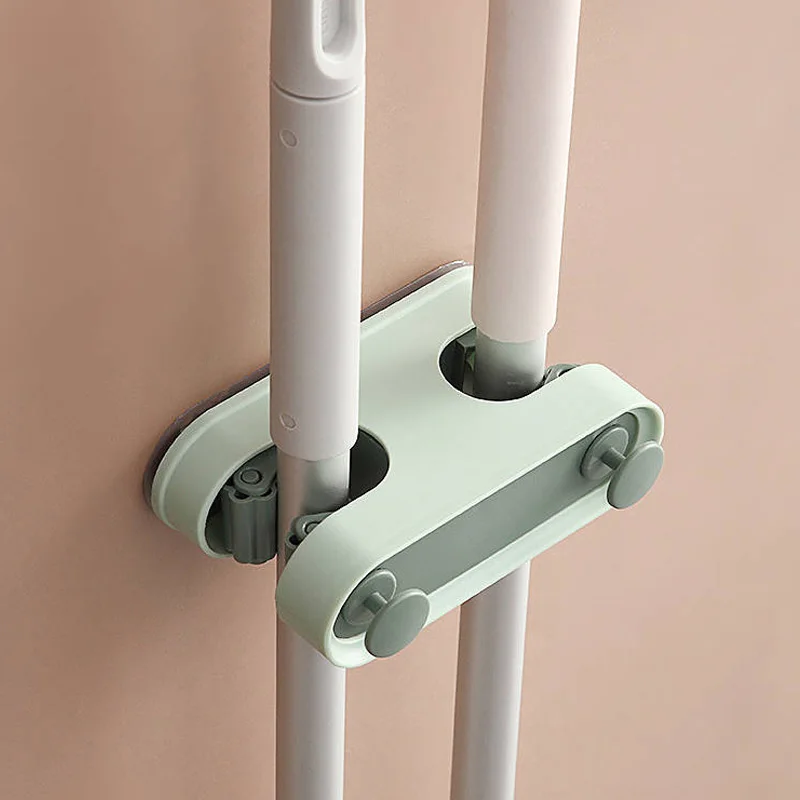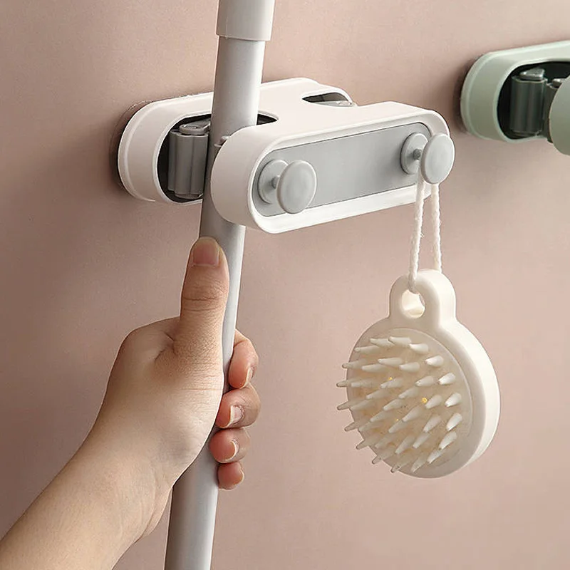 Double Mop Broom Holder Rack Grippers Clips Wall Mount Home Appliance Multi-Purpose Hooks Kitchen Bathroom Organizer
