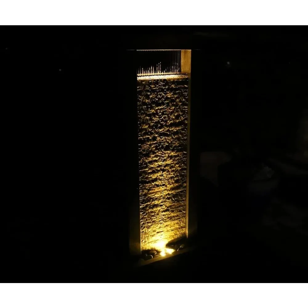 - Dynamic LED Lighting: Hidden LEDs illuminate the water from inside the basin, making a dynamic sunset-like lighting impact alongside the wall of pure cream-colored slate