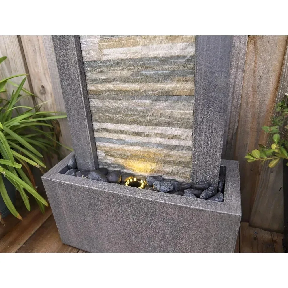 - Designed For Ambience: The luxurious, heat grey end enhances the cream-colored slate and the darkish river stones; Gently falling water creates a zen environment