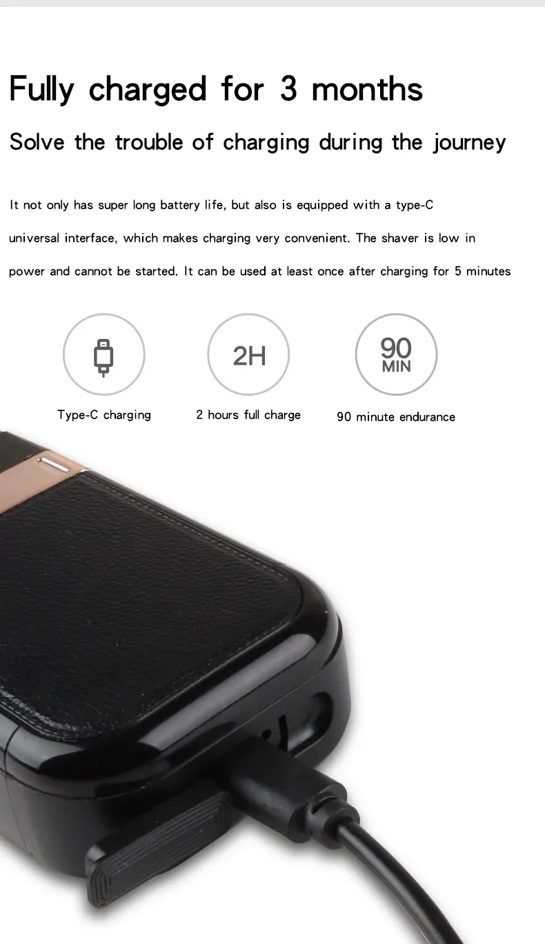 • Fast Charging Function :Charge the razor rapidly and effectively, saving time and problem.