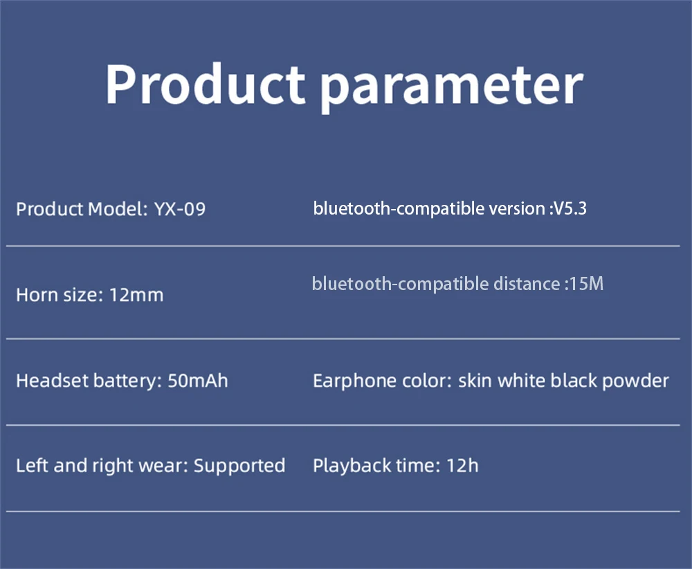 High Tech 12mm Simple Intelligent Water Proof Durable Music Earphone 15m Fashion Consumer Electronics Long Battery Life 50mah