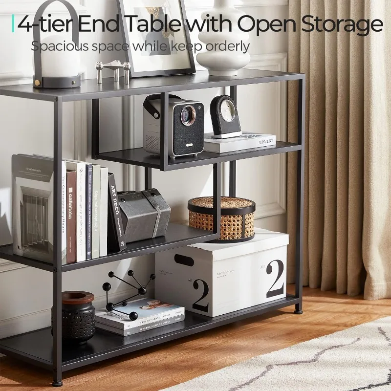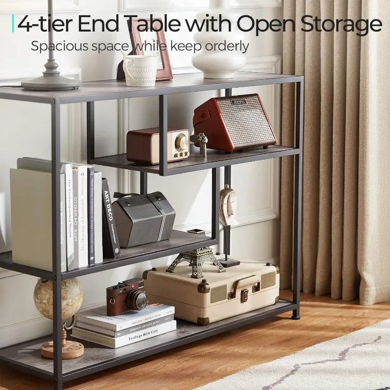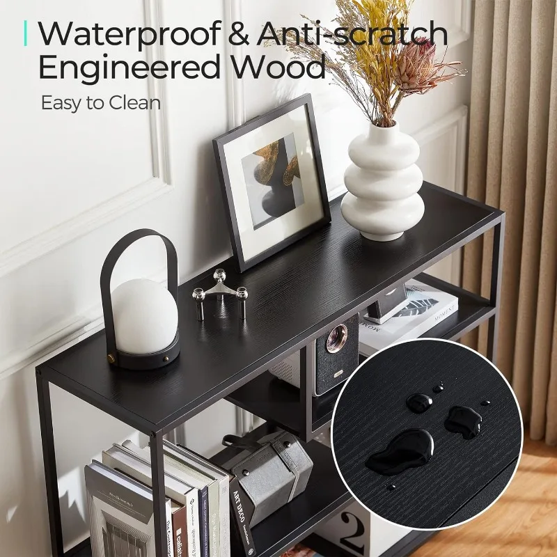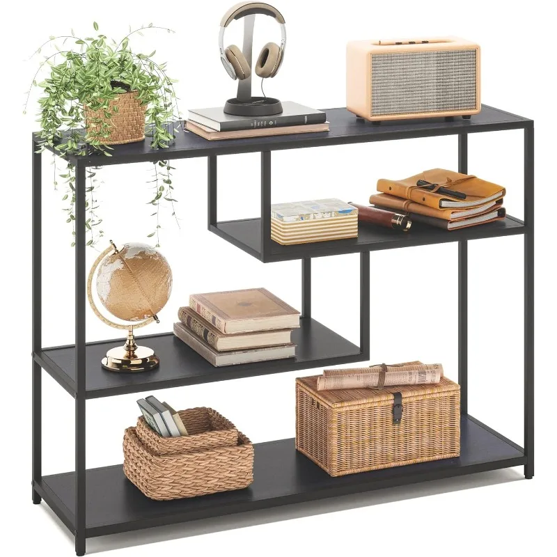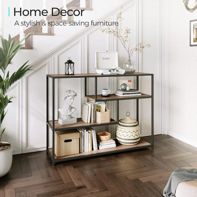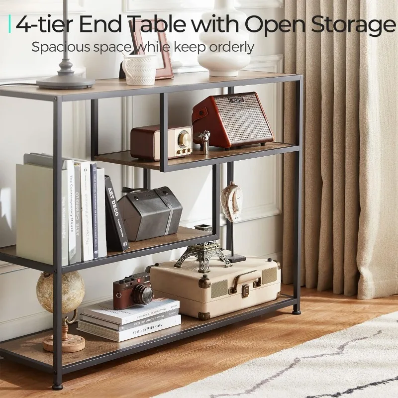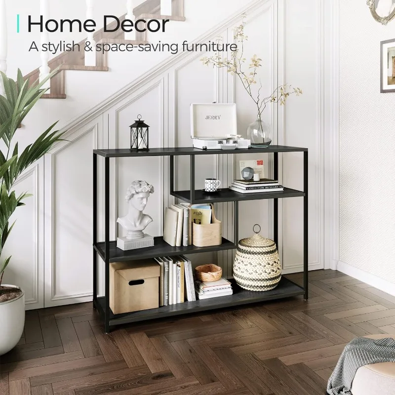 - 4 Tier Console Table: Remove all pointless parts and deal with what you want, this console desk for entryway exudes class and rusticity in your area. With 4 slender lengthy open cabinets, this couch desk is ideal for displaying a variety of things equivalent to books, ornamental crops, and framed images. Keep litter out of sight whereas including a contact of artwork and a basic aesthetic to your area, making a welcoming ambiance at your entryway.
