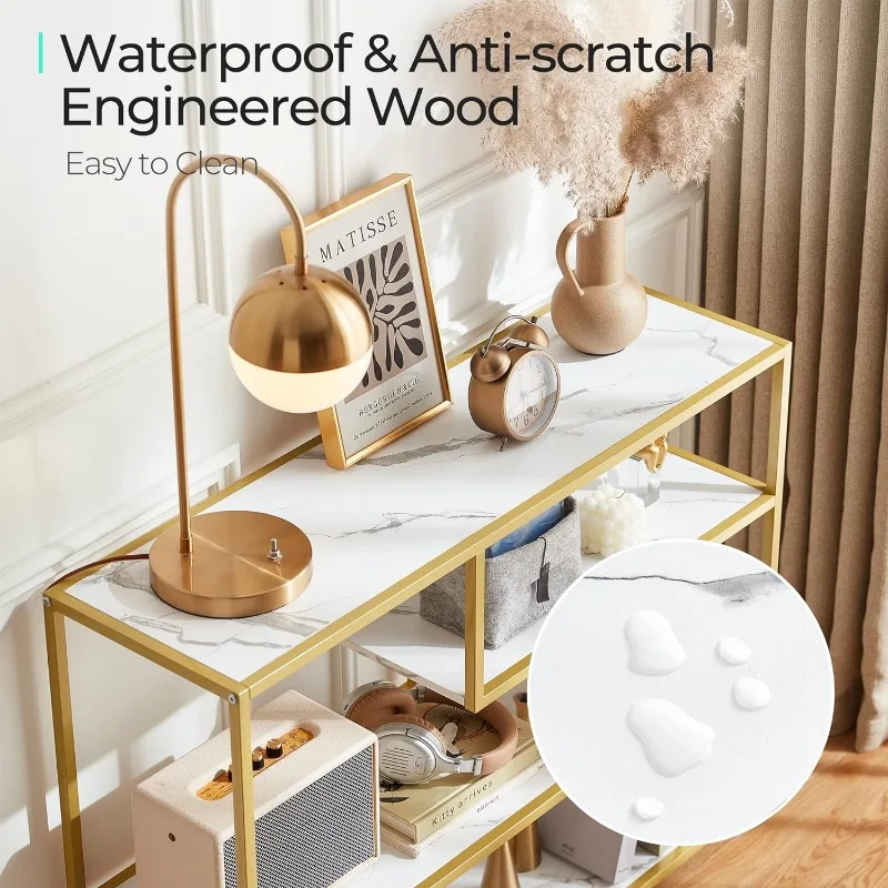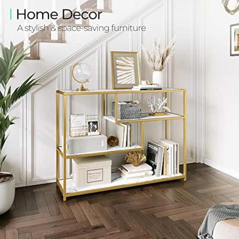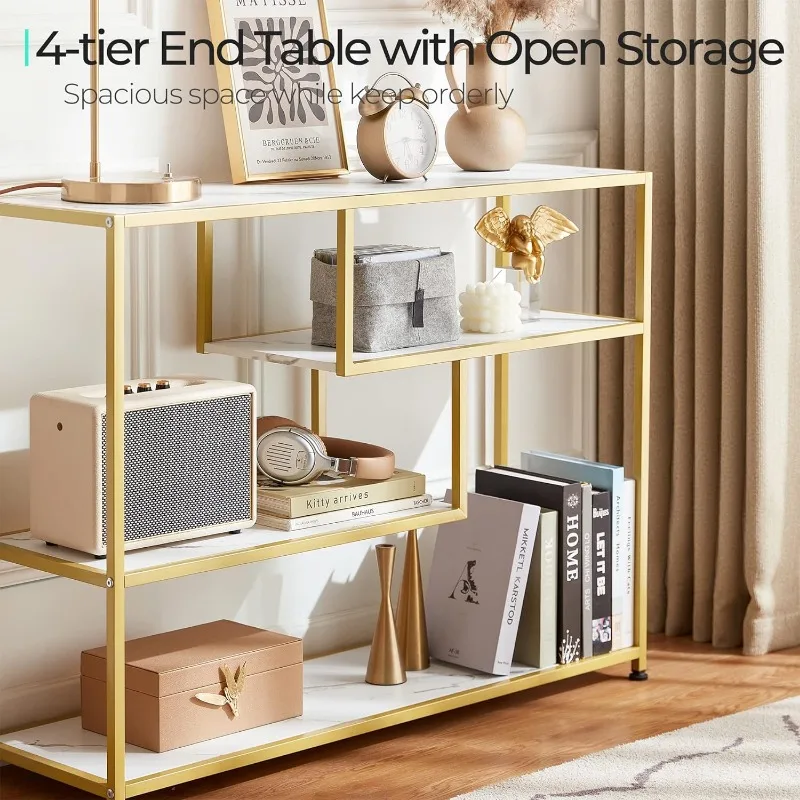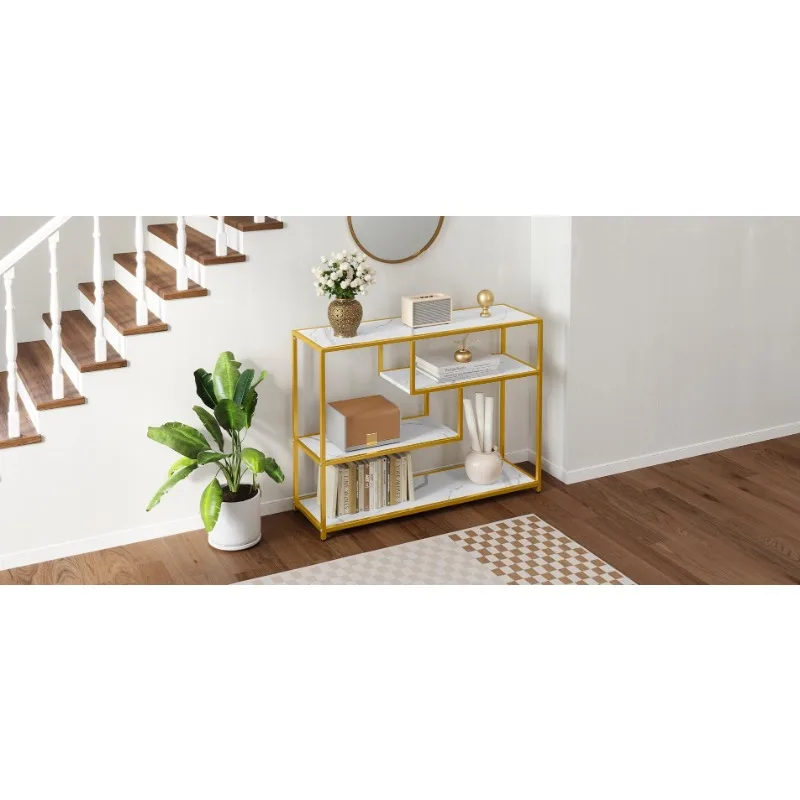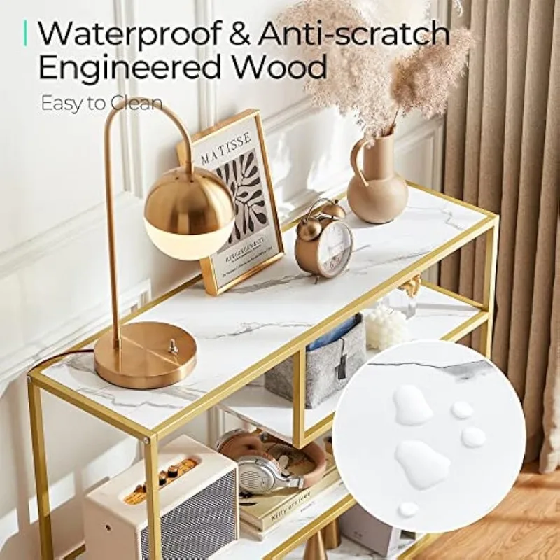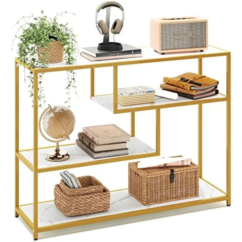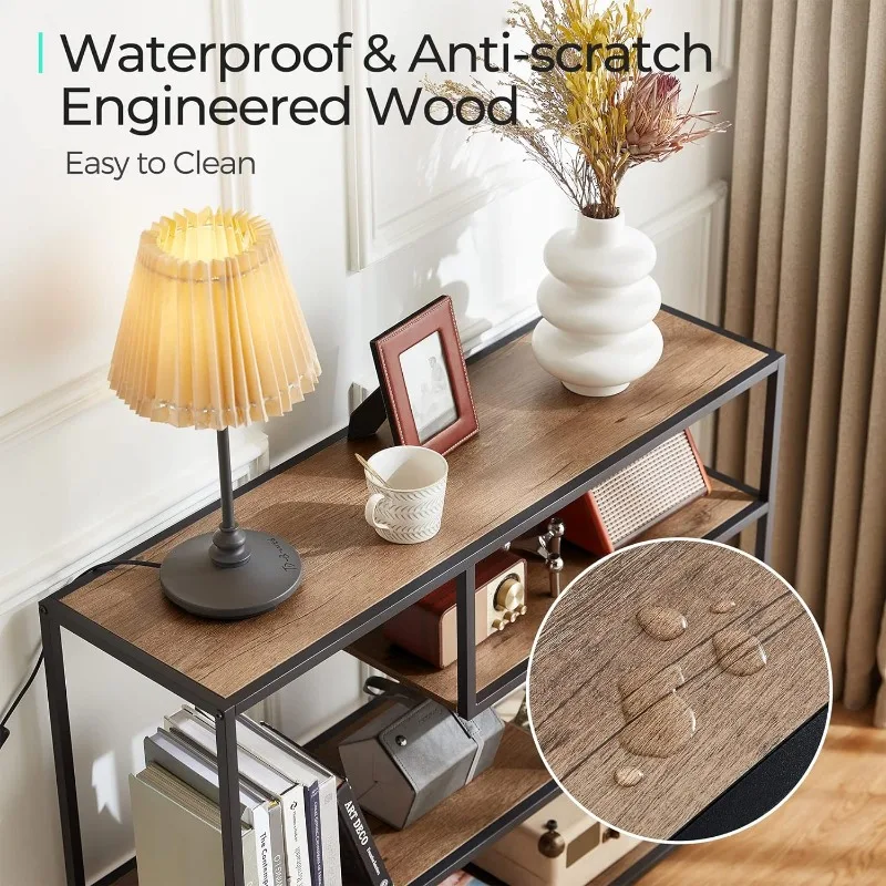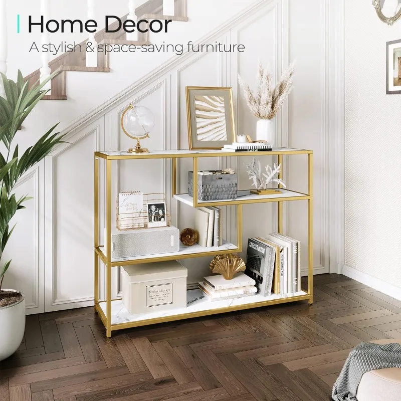- 4 Tier Console Table: Remove all pointless parts and deal with what you want, this console desk for entryway exudes class and rusticity in your area. With 4 slender lengthy open cabinets, this couch desk is ideal for displaying a variety of things equivalent to books, ornamental crops, and framed images. Keep litter out of sight whereas including a contact of artwork and a basic aesthetic to your area, making a welcoming ambiance at your entryway.