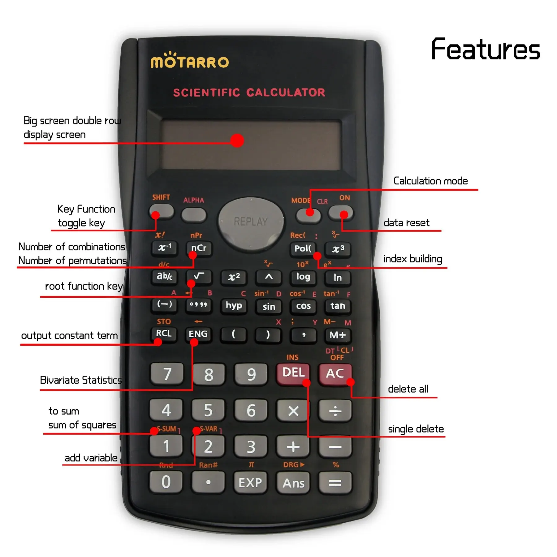 MOTARRO Multifunctional Function Calculator Student Portable Big Screen Function Calculator Stationery School Office Supplies