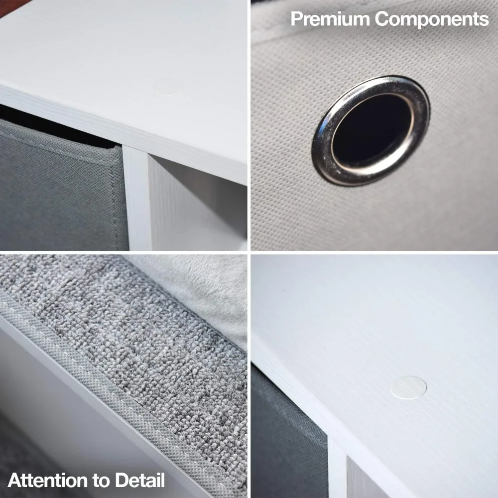 - MULTI-FUNCTIONAL MODERN DESIGN: (I) Pure white bookshelf with contrasting gray step pads & perch mix in seamlessly together with your fashionable dwelling décor. (II) 28″ tall, padded window perch offers your pet the environmental enrichment they want & helps lower anxiousness, boredom, or unfavourable emotion. (III) Two premium storage baskets assist declutter your own home by storing your pet’s toys, treats, & equipment or gadgets round your home that want a house. (IV) Reversible to suit your dwelling and house