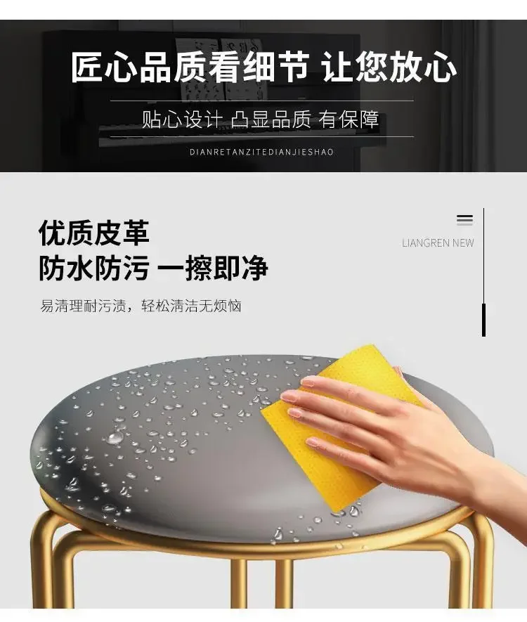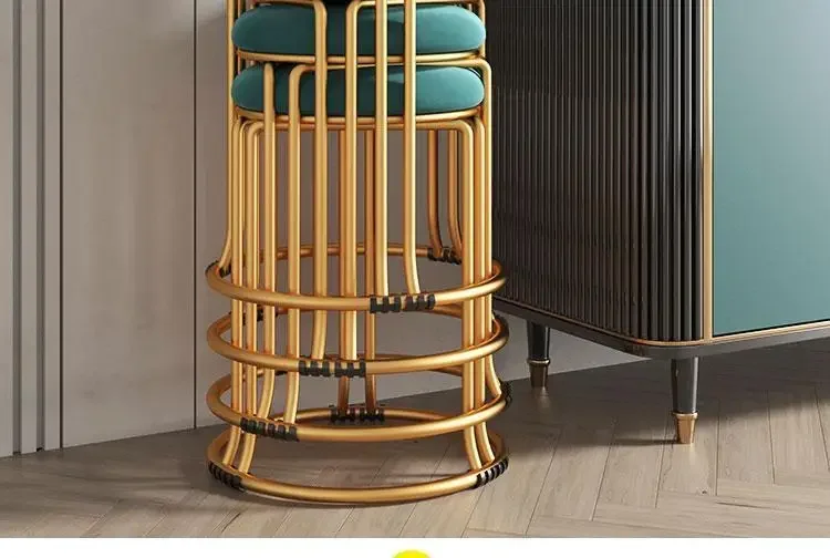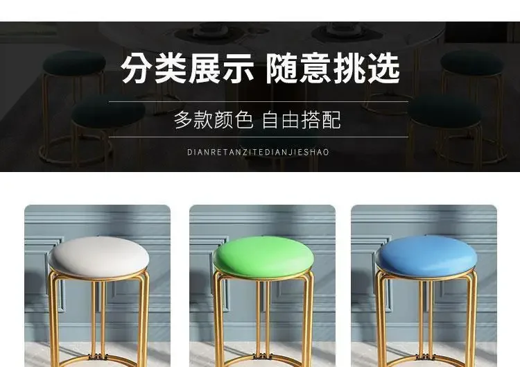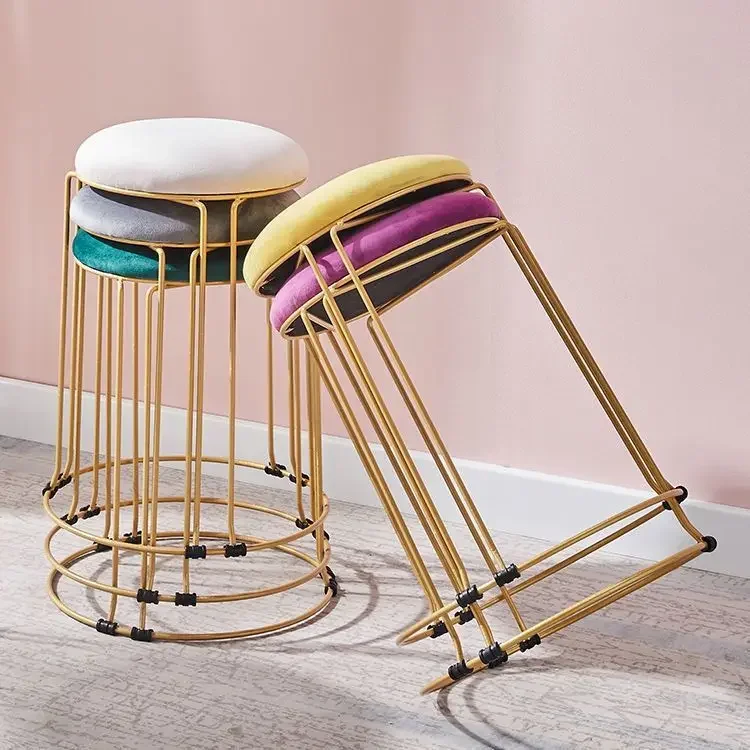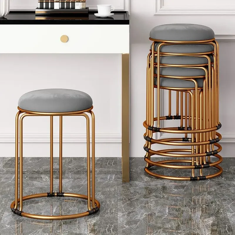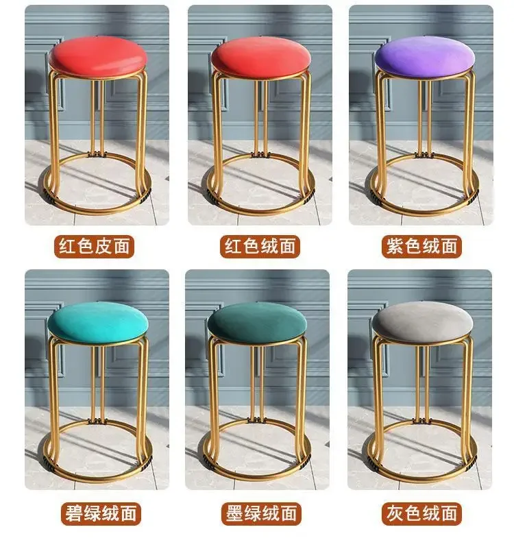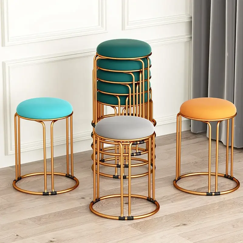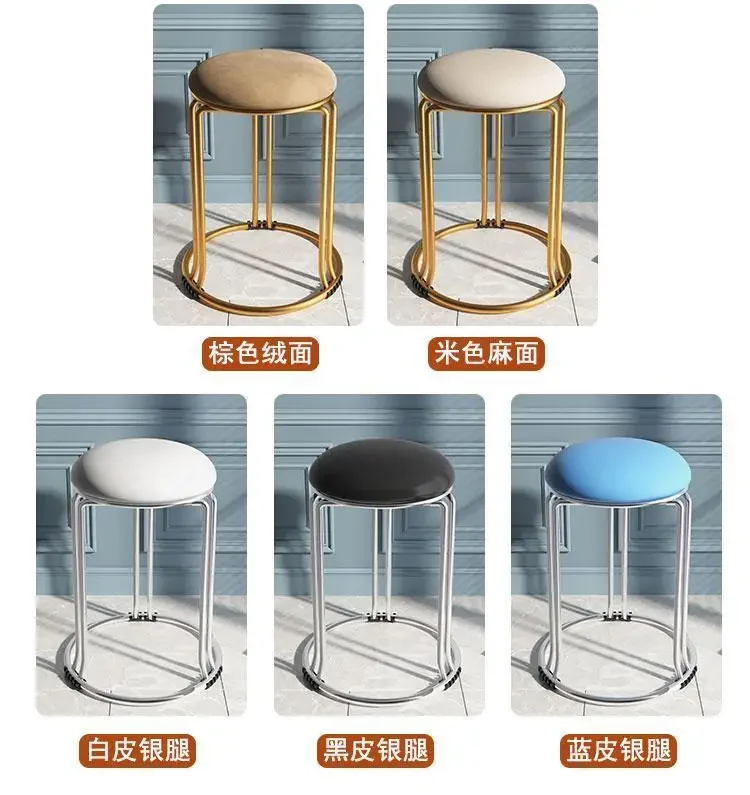 Stools Thickened Home Living Room Adult High Stool Can Be Stacked Simple Dining Round Stool Fashion Luxury Steel Stool Furniture