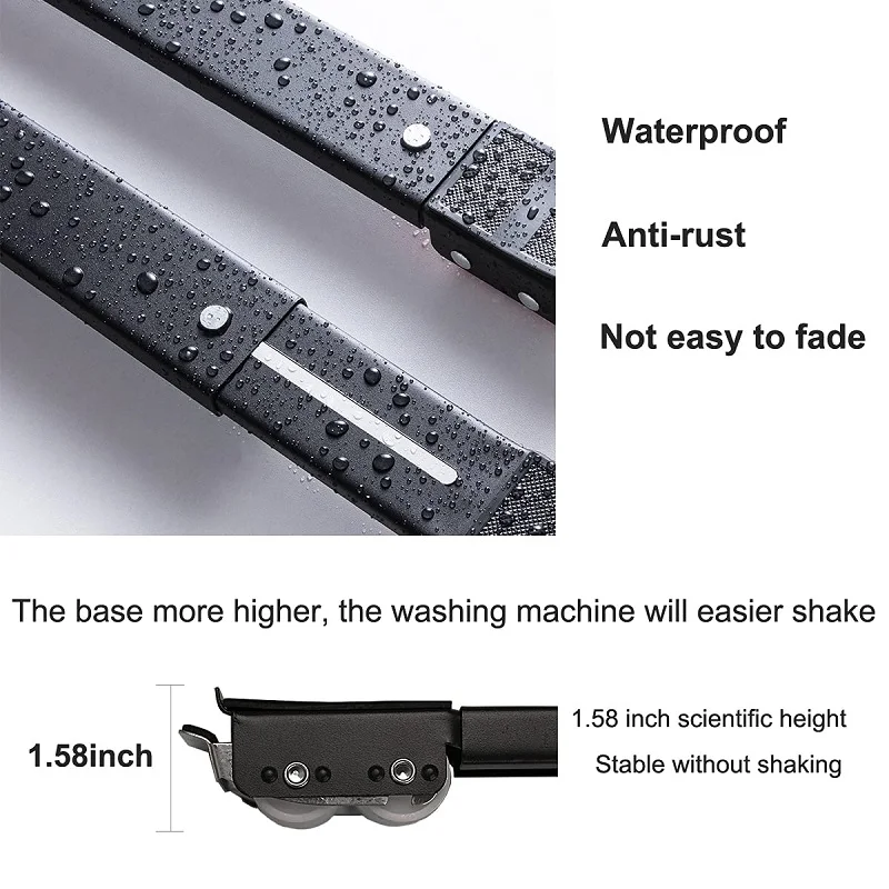 No sophisticated set up steps required or instruments. Simply place 2 brackets below the corners of fridges, washing machines, dishwashers, dryers or different family home equipment and furnishings, Then gently step on the brake to repair the bracket.
