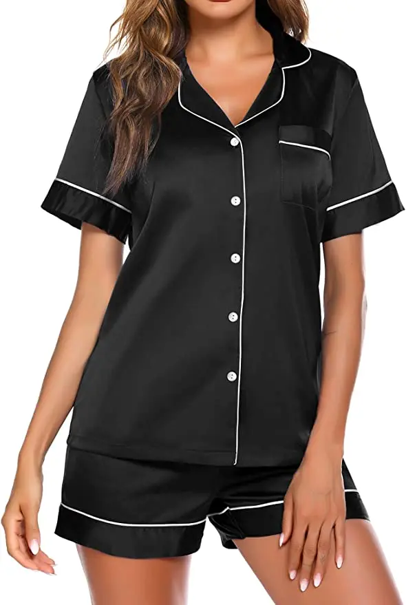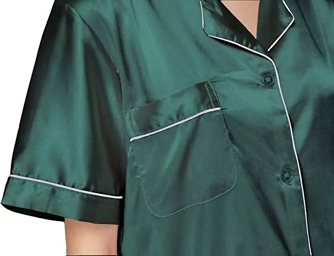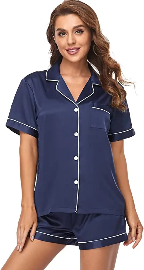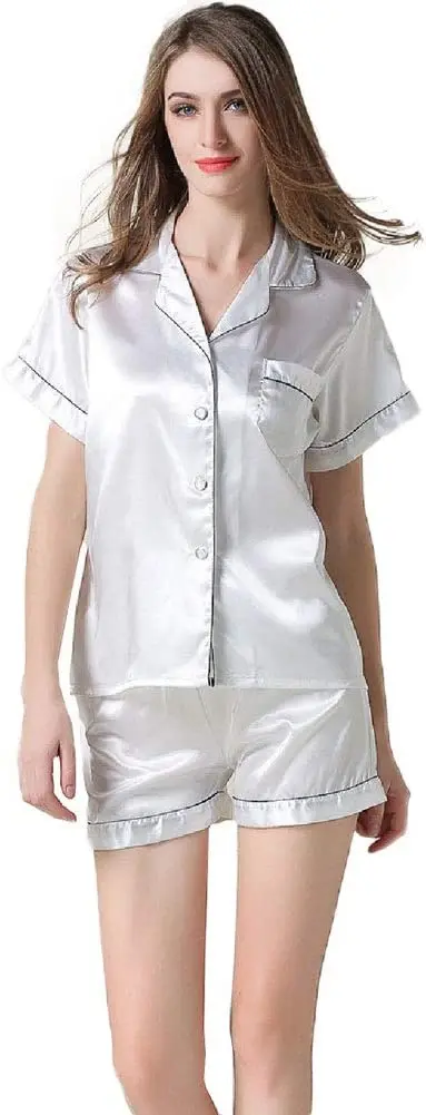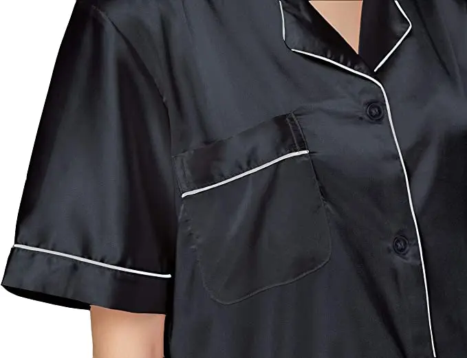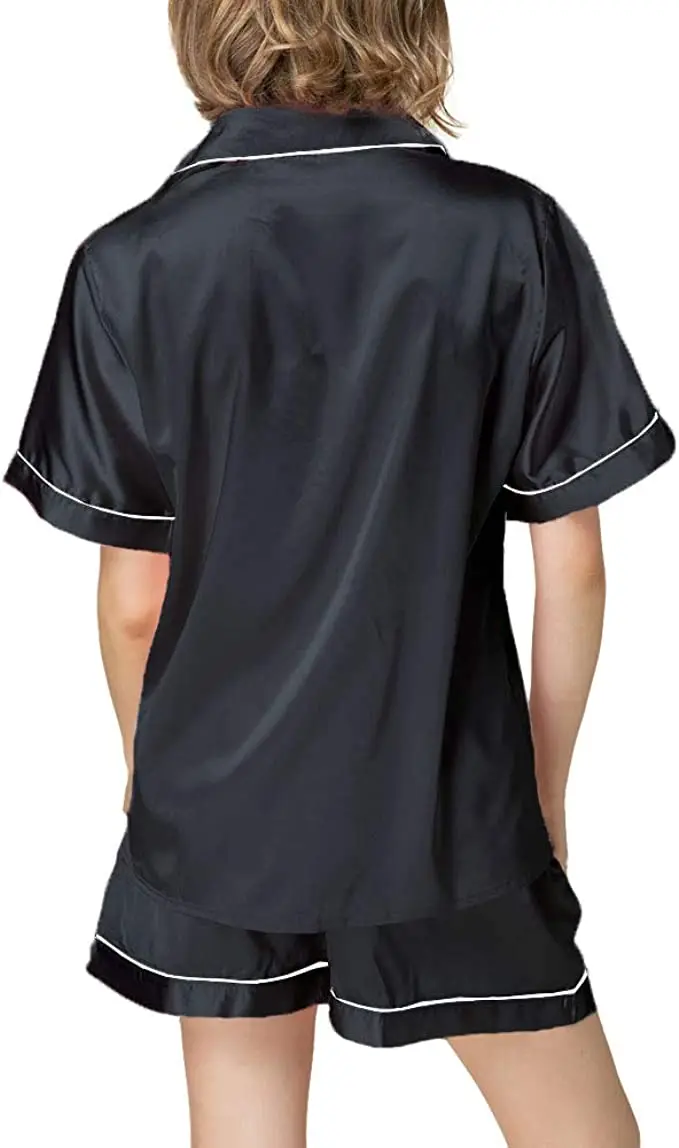 Home Uncategorized Womens Silk Satin Pajamas Pyjamas Set short Sleeve Sleepwear Pijama Pajamas Suit Female Sleep Two Piece Set Loungewear 4XL 5XL