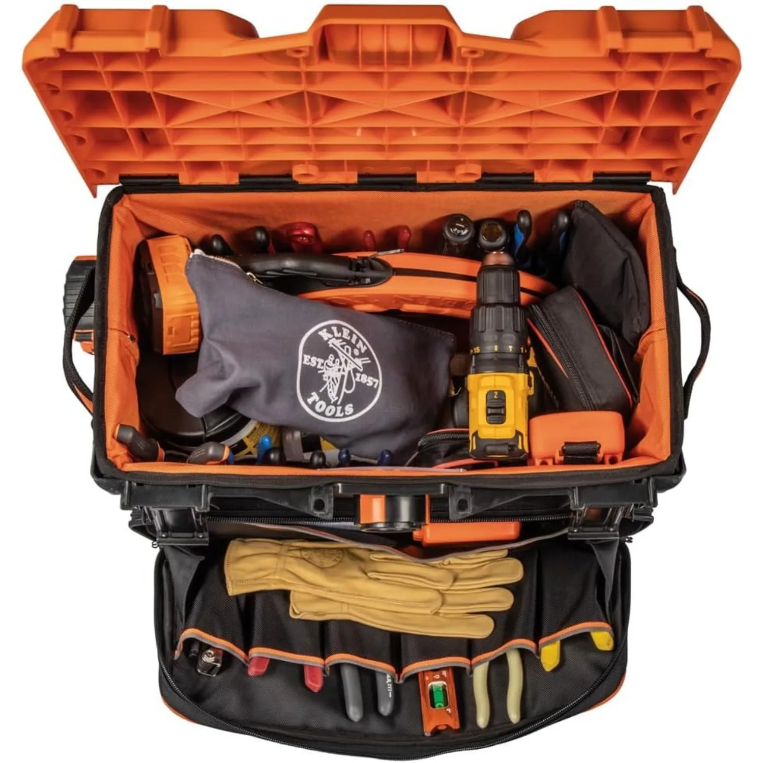 The rugged Tradesman Pro Tool Master Rolling Tool Bag from Klein Tools will simply roll over robust terrain with 8-Inch (203.2 mm) wheels, excessive clearance, and a heavy-duty telescoping deal with. Transport as much as 250-Pounds (113 kg) of your instruments within the broad open inside. Organize smaller gadgets in 19 pockets inside and outside, all constructed with durable1680d ballistic weave materials. The laborious prime permits for stacking and has compartments to carry your mobile phone, drinks, or small elements. Twist-lock Klein LED Light or Wireless Speaker on entrance mount (gadgets bought individually).