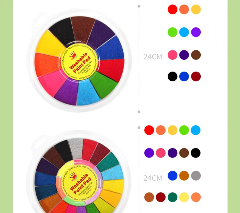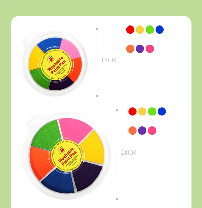 👍 Suitable Size, Multiple Colors: Our stamp pad suits your children palms and most rubber stamp. There are 3 varieties of ink pads for your selection: 6 colours / 7 colours / 12 colours.