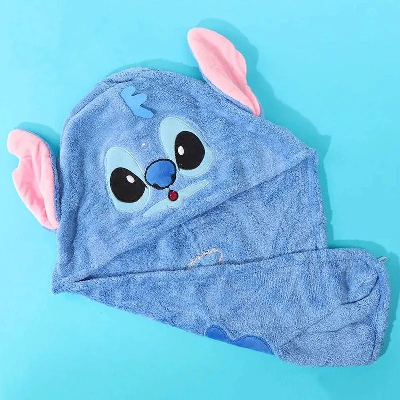 Home Uncategorized Disney Lilo and Stitch Hair Towel Cartoon Anime Figures Quick Dry Hat Super Absorbent Cap Bath Wrap Wipe Towels Girl Women Gifts
