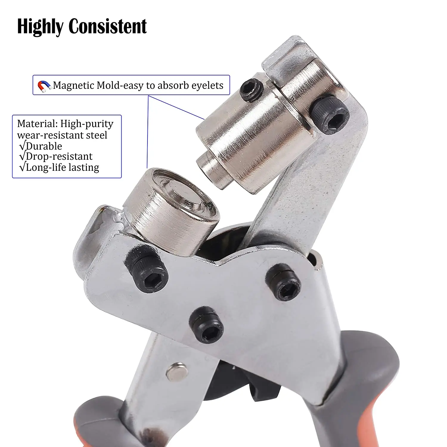 【Magnetic Mold】Magnetic dies to repair the eyelet and washer nicely. With the proper opening angle, you’ll be able to press it by just one hand. 【Anti-slip & Anti-friction Handle】The deal with made of anti-slip engineering rubber materials is anti-friction, anti-slip, and simple holding. 【More Strength Saving】Using the precept of two-point help leverage, it’s handy to make use of and extra power saving to make use of. This guide eyelet puncher matches up 10.5 inside diameter eyelets. 【Portable & Lightweight】This guide eyelet puncher with a particular light-weight design, it’s simple to take to anywhere. 【Widely Used】It can be utilized for PVC banners, tarpaulin, clothes, bag, and case, and so on.