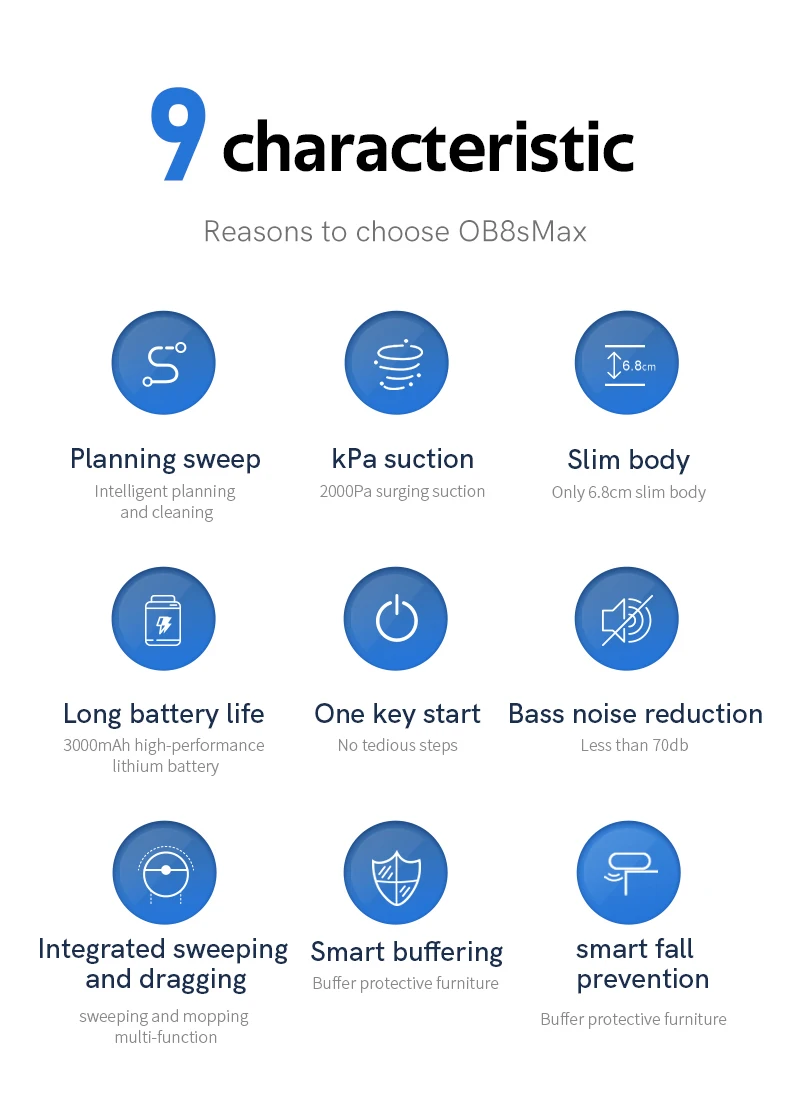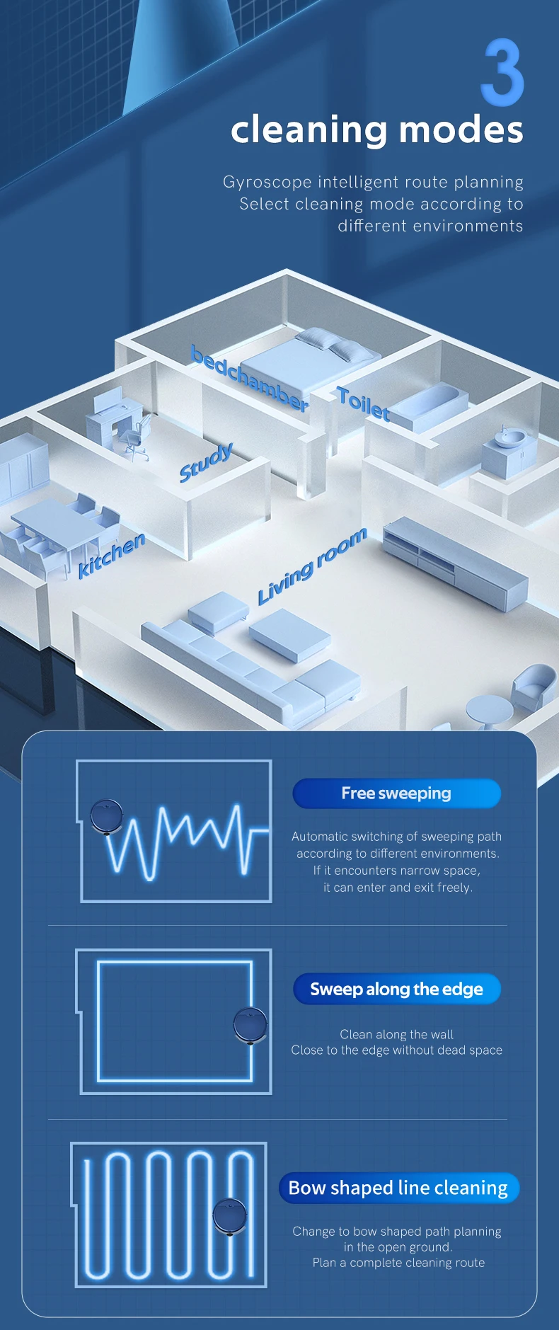Intelligent cleansing route planning, 2000pa surging suction, solely 6.8cm slim physique