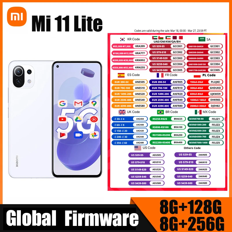 Xiaomi mi 11 Lite smartphone Cell Phones Full Screen 90HZ 5G AMOLED Snapdragon 780G 64MP