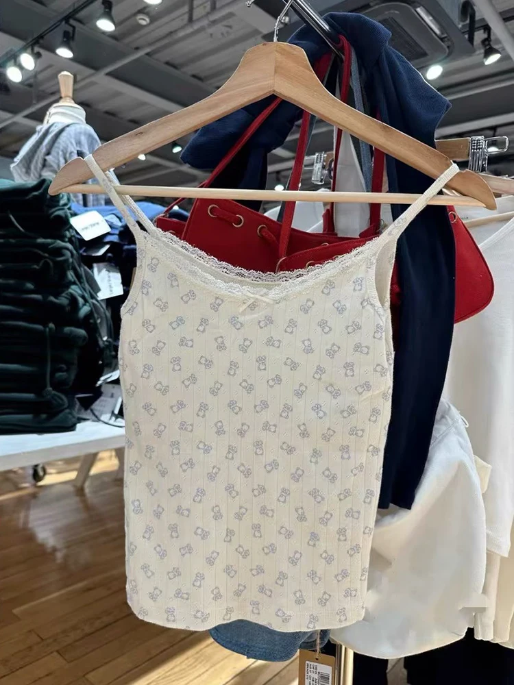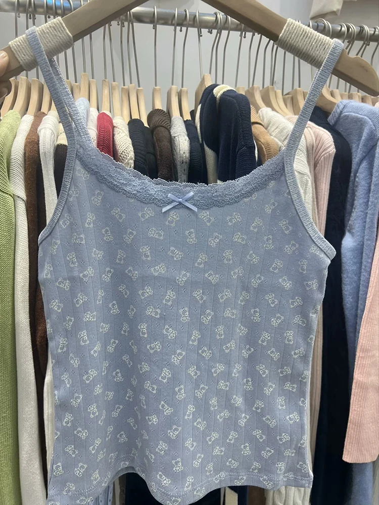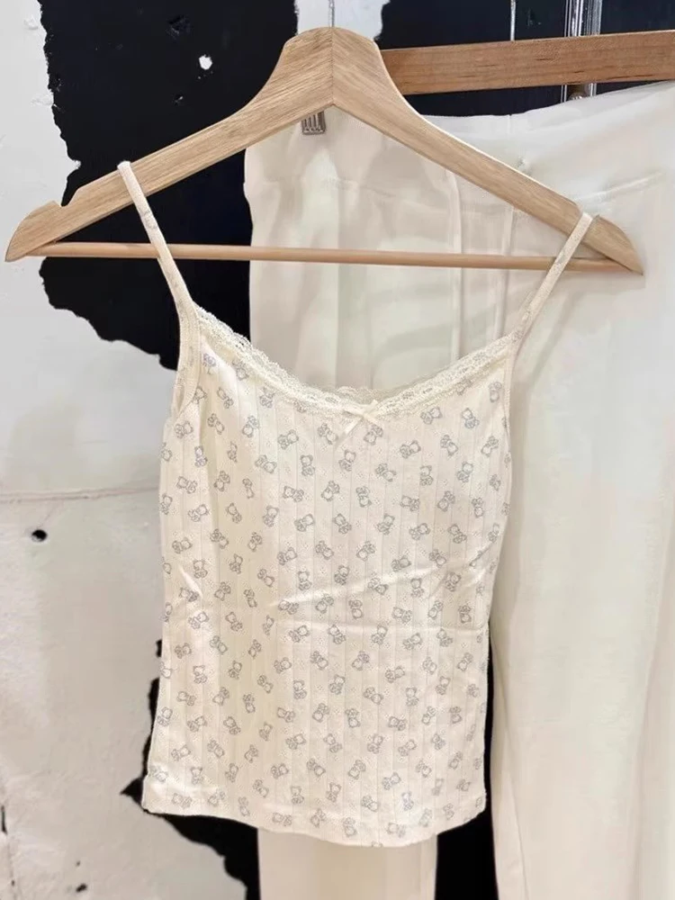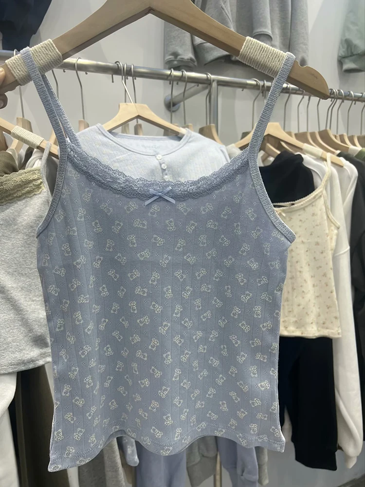 Yaphleet Y2K Girls Vintage Cotton Crop Tops 2024 Spring Fashion Ladies Sweet Floral Tank Top Cute Clothes for Women Chic