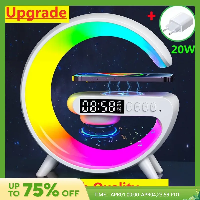 Function description: 15W Fast wi-fi charging,ambiance lamp, bedside lamp, dazzling gentle impact, Bluetooth audio, speaker play and Aux, TF ,Time, Alarm Clock mode.