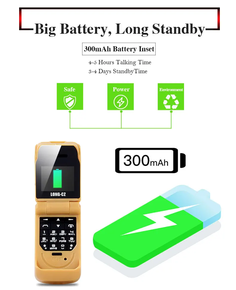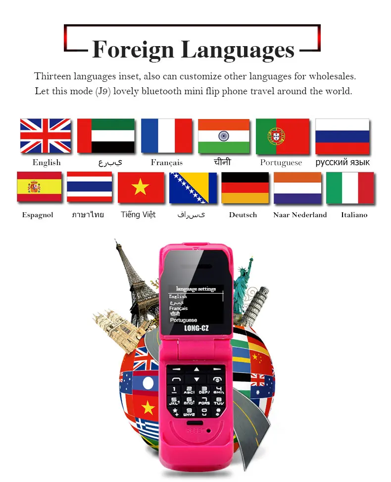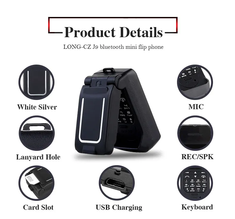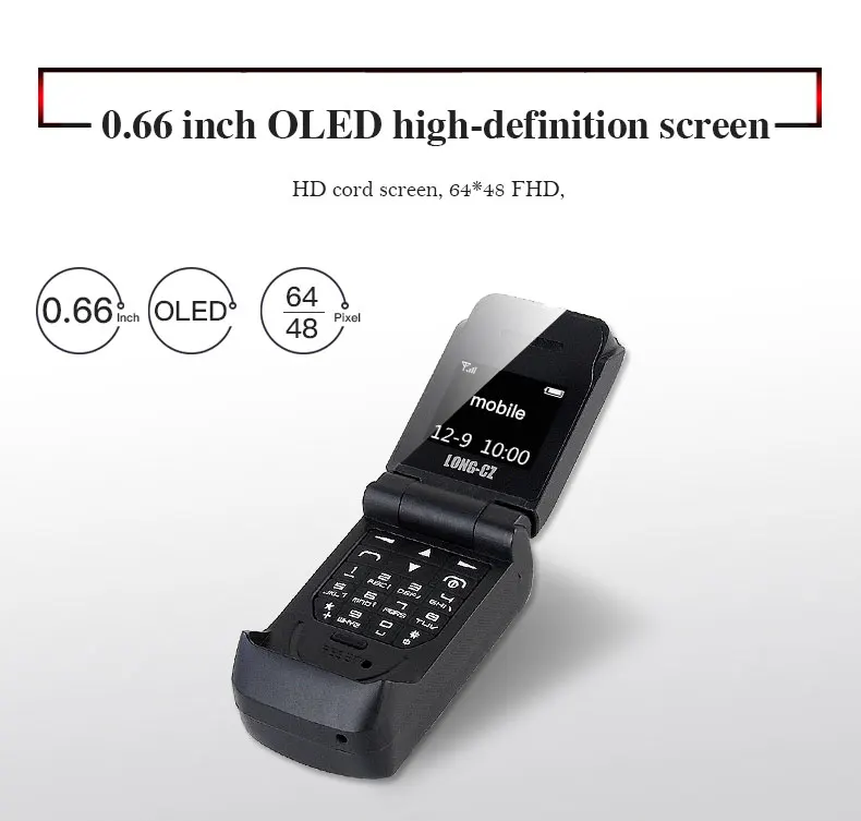 Mini Flip Mobile Phone LONG-CZ J9 0.66" Smallest Cell Phone Wireless Bluetooth Dialer FM Magic Voice Handsfree Earphone For Kids