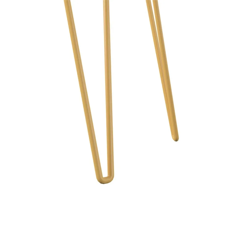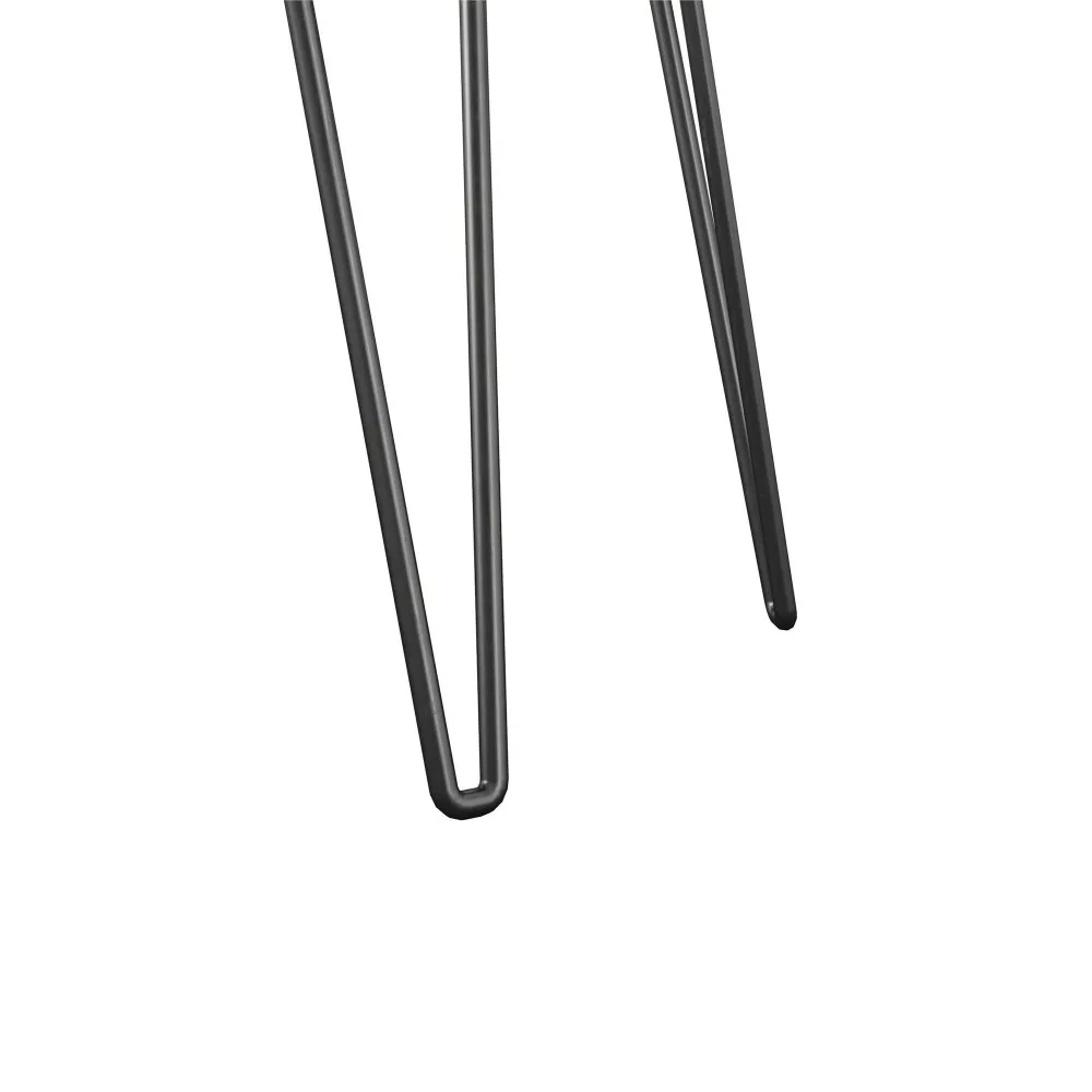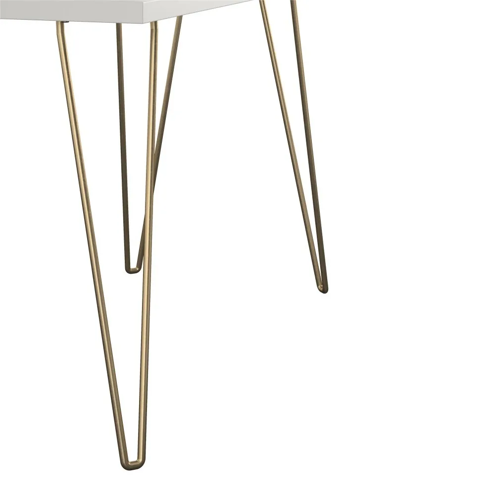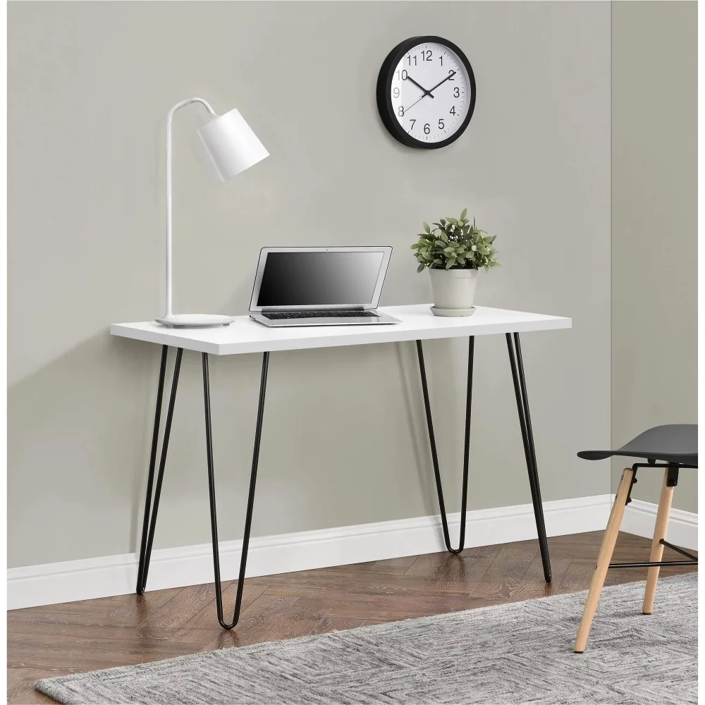 - Made from laminated particleboard and metallic hairpin legs, the white end matches the black legs for an industrial look