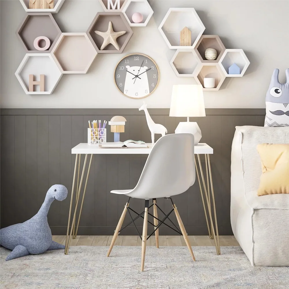 Make probably the most of this piece’s versatility by utilizing it as a desk, self-importance or console desk within the workplace, den, or front room. Able to help as much as 100 lbs., it is nice for holding your laptop computer, vital paperwork, desk lamp and household images. The white end coupled with the black metallic hairpin-style legs provides an up to date, fashionable look. The Desk ships flat to your door and minimal meeting is required. Simply connect the 4 legs to begin utilizing your Desk. Once assembled, the Desk measures to be 26″H x 40″W x 19.5″D.