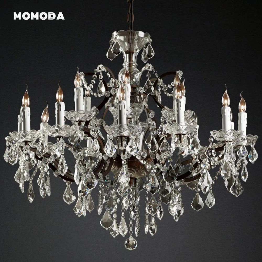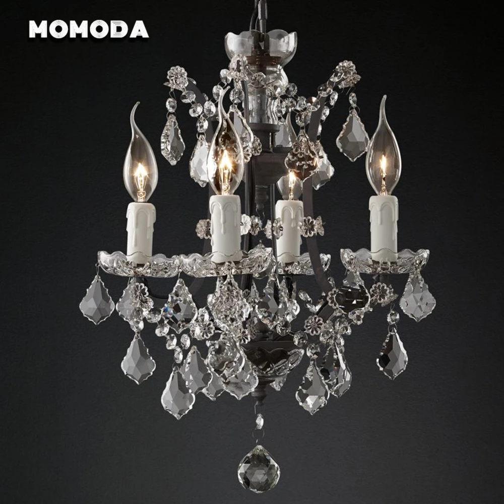 19th C. Rococo Iron & Crystal Chandeliers Retro LED Candle Lights Home Decor Bedroom Living Room Farmhouse Indoor Lamps Lustre