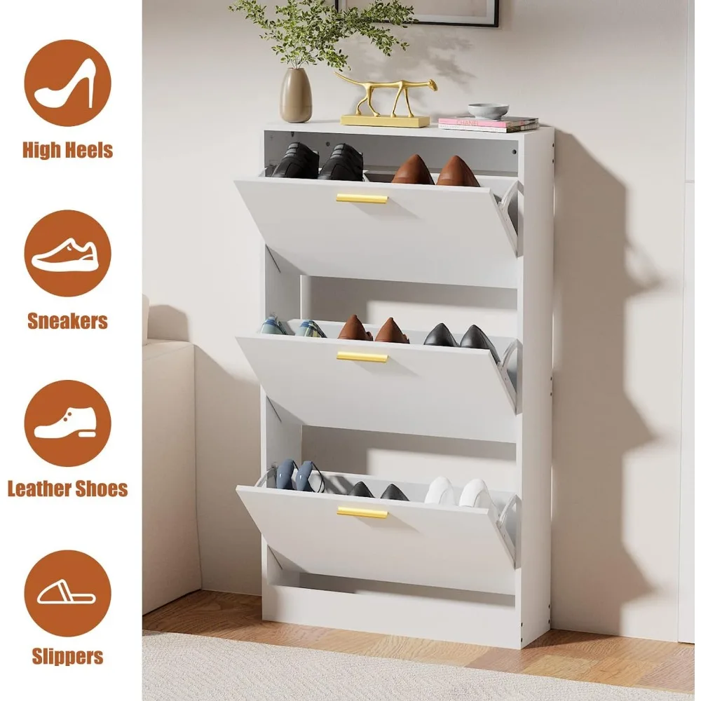 【Entryway Shoe Cabinet】 No extra sneakers all around the ground, do away with the mess! white shoe cupboard is easy and classy, which may completely match all types of ornament kinds. Perfect for putting within the entrance, hallway, lounge, or porch, present a neat and arranged area on your residence.