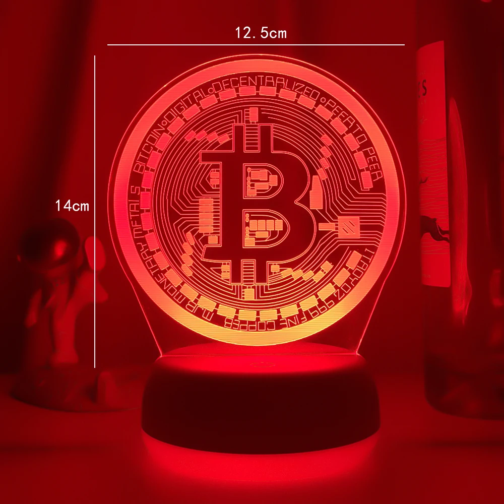 Acrylic Led Night Light Bitcoin for Room Decorative Nightlight Touch Sensor 7 Color Changing Battery Powered Table Night Lamp 3d