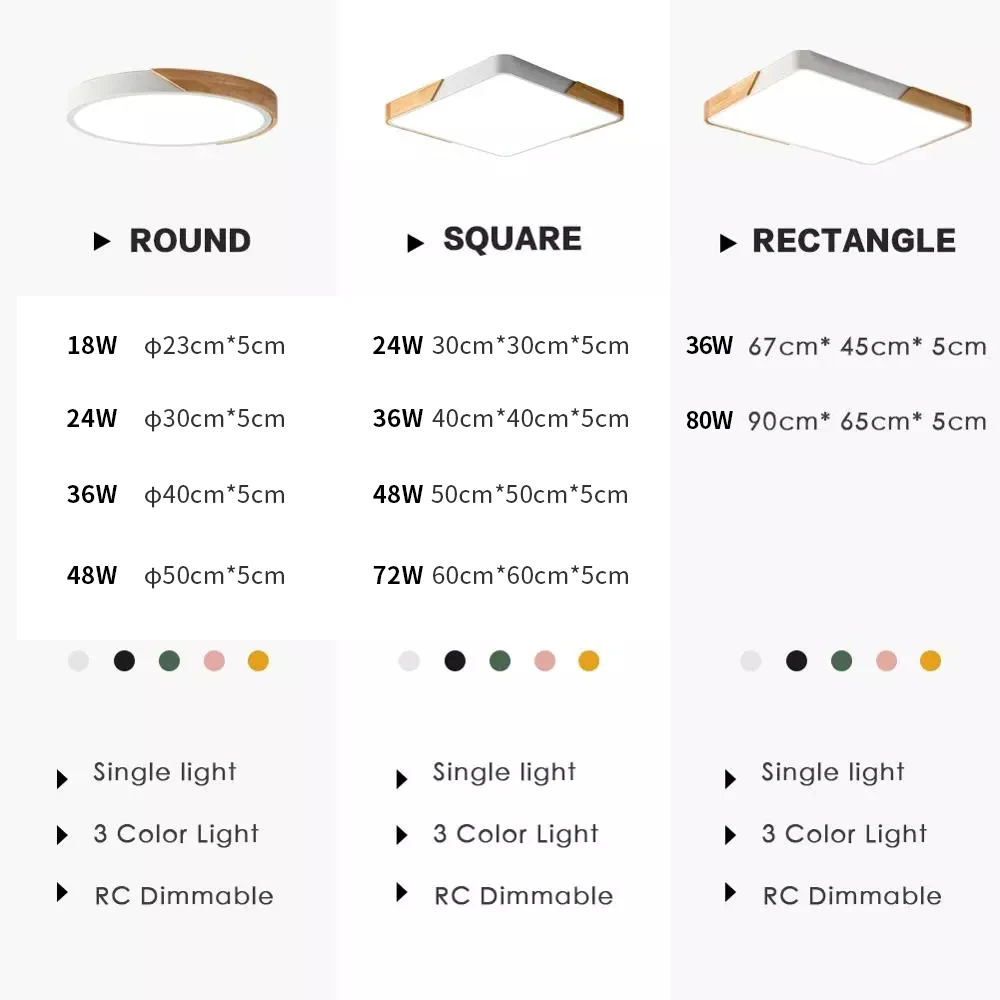 Modern LED Ceiling Light Ultra Thin Lamp Wooden Lighting Fixture Surface Mount Living Room Home Decor Balcony Remote Control