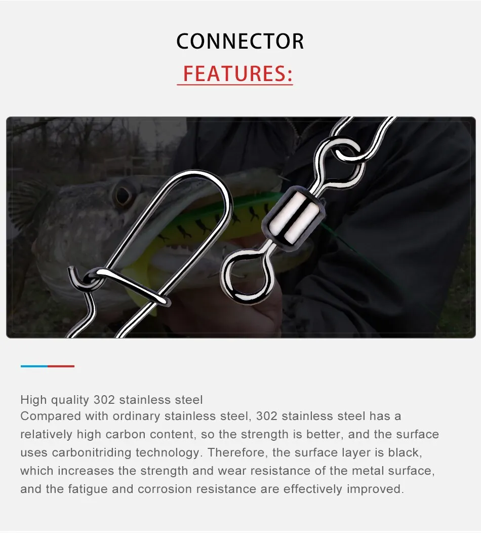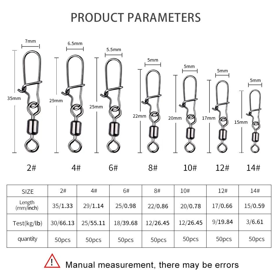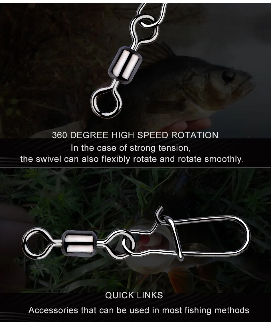 • 50PCS Pin Bearing Rolling Swivel :Comes with 50 items of pin bearing rolling swivels, making certain that you’ve got sufficient for all of your fishing wants.