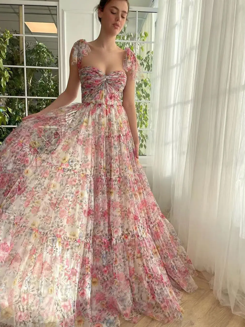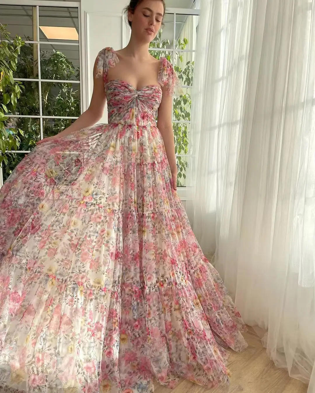 Sapmae Flower Ball Gown Dresses for Women Special Evening Scalloped Beatiful Ruffle Pastrol Lace Sling All Occasion