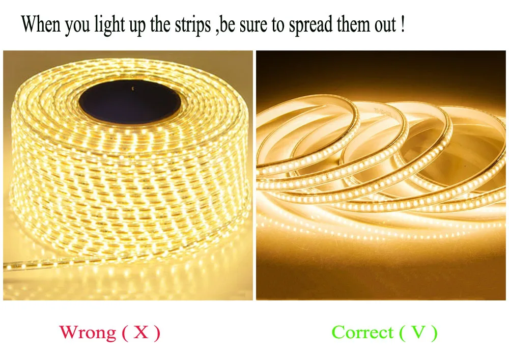 2.When you gentle up the strips , you’ll want to unfold them out ,the led strips can’t be rolled collectively ,Otherwise when you flip it on for a very long time, it's going to be scorching. the sunshine strip might be broken ,Even will trigger severe security accidents !