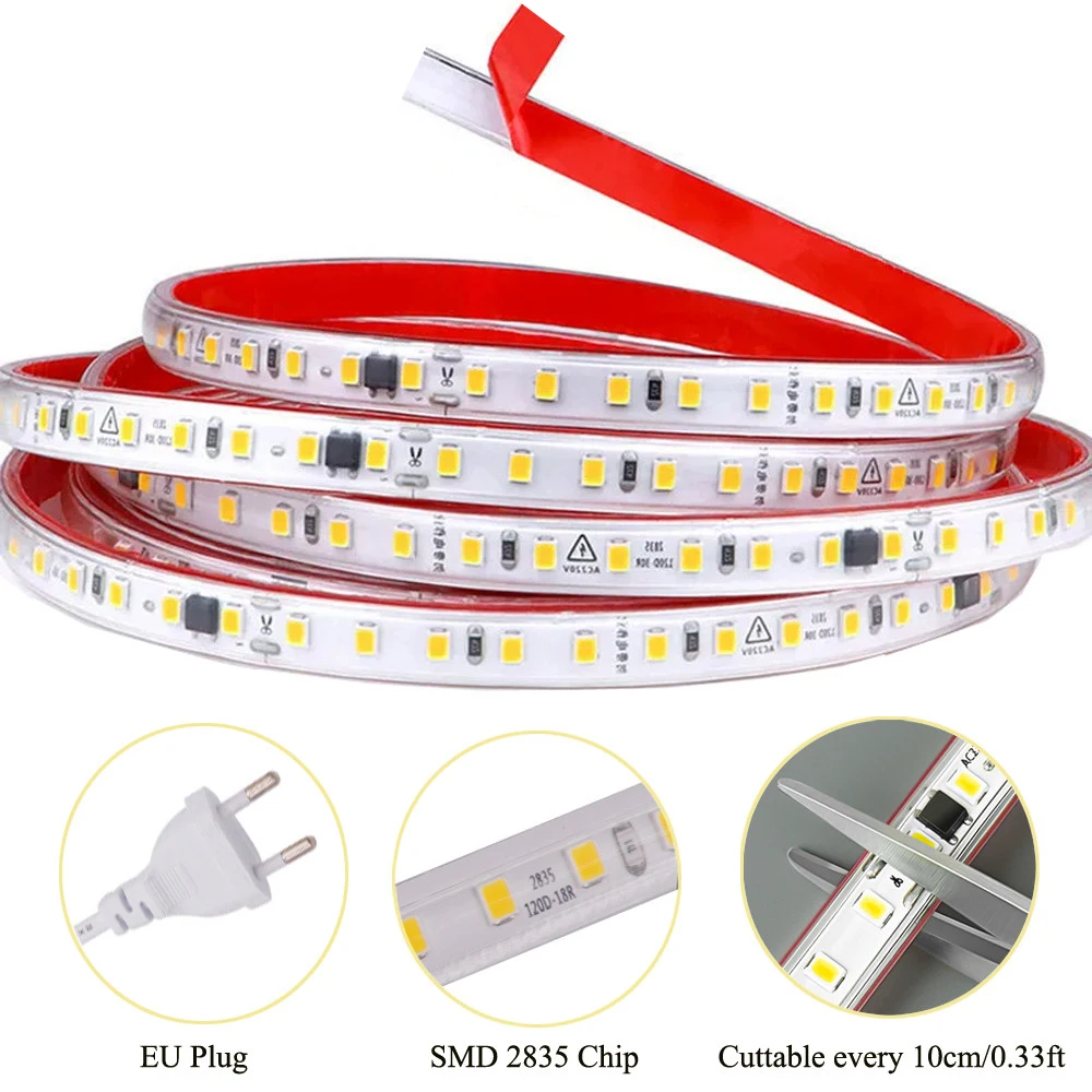 Ultra-thin Waterproof Led Strip Light 10cm Cut 220V 120LEDs/m Self-adhesive Linear Lighting Flexible LED Ribbon Cool&Warml White