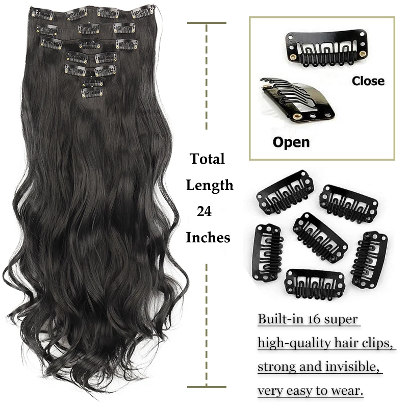 Home Uncategorized 16 Clips 7Pcs/Set Hair Extensions Long Wavy Hairstyle Natural Synthetic Black Blonde Hairpieces Heat Resistant For Women